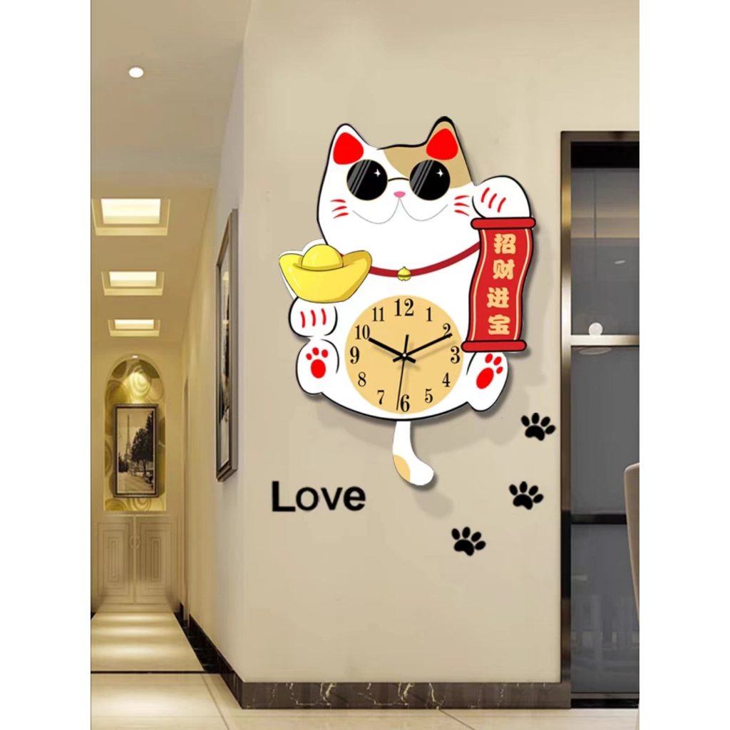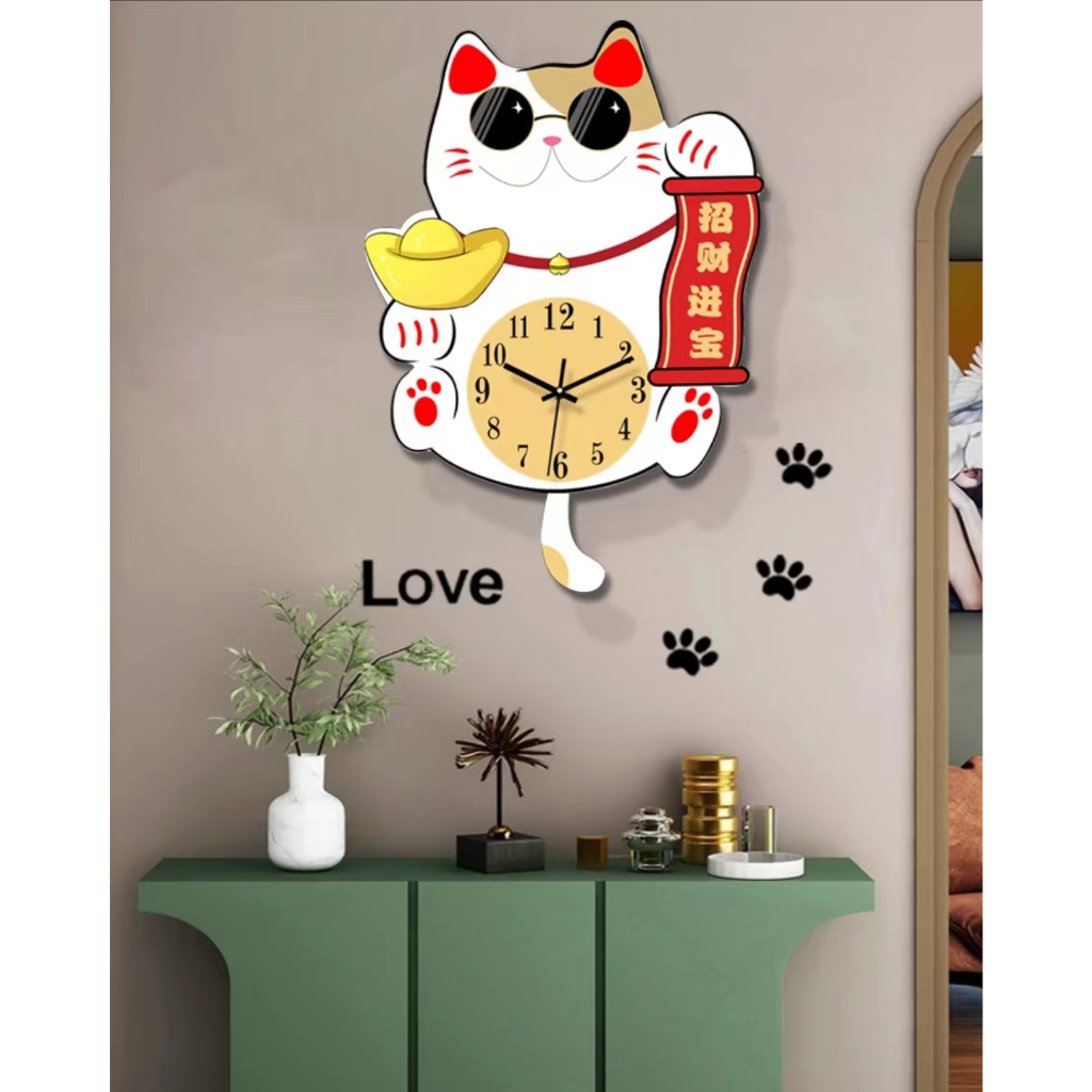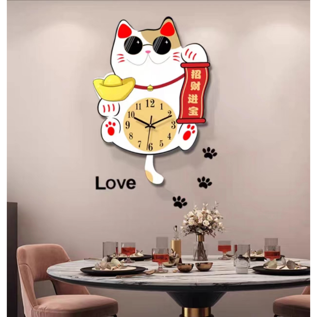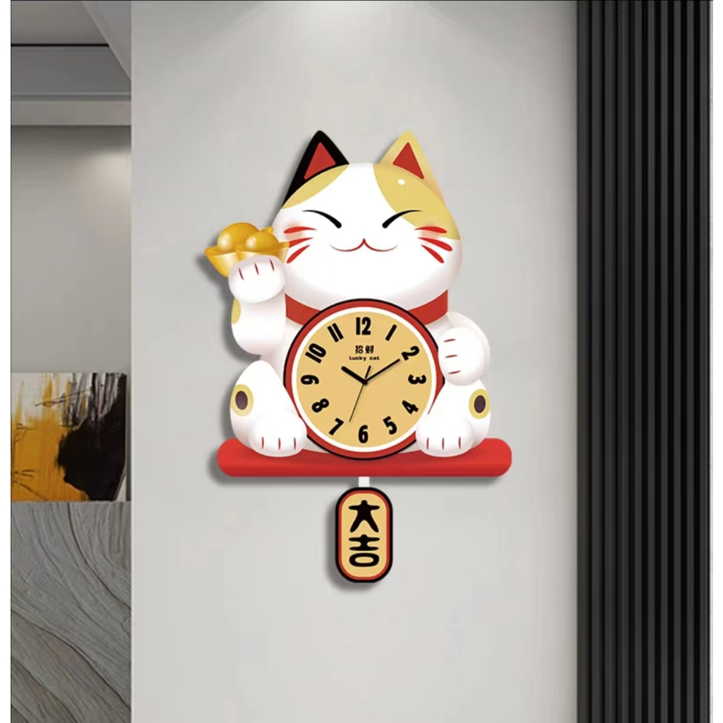 GOOD LUCK CAT WALL CLOCK LUCKY PENDULUM TAIL SWING DECORATIVE CLOCKS FORTUNE CHARMS