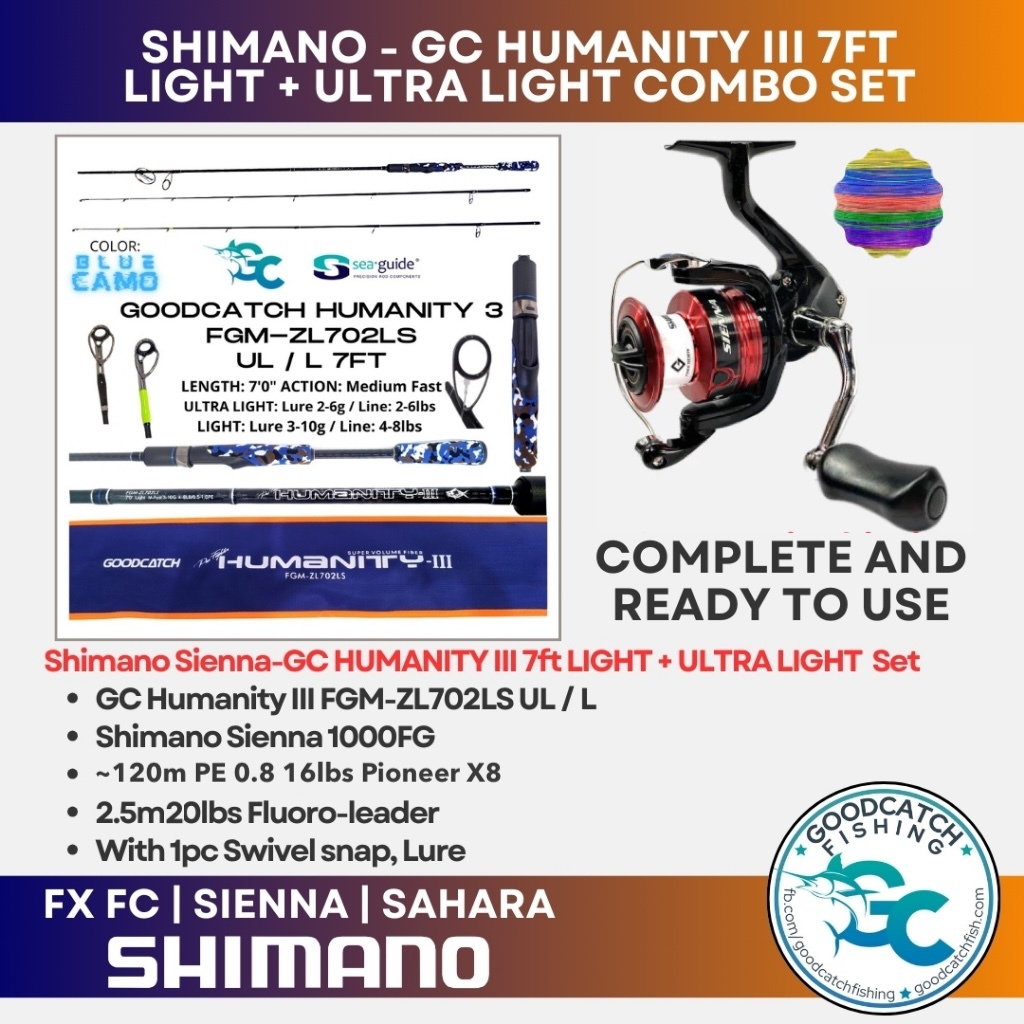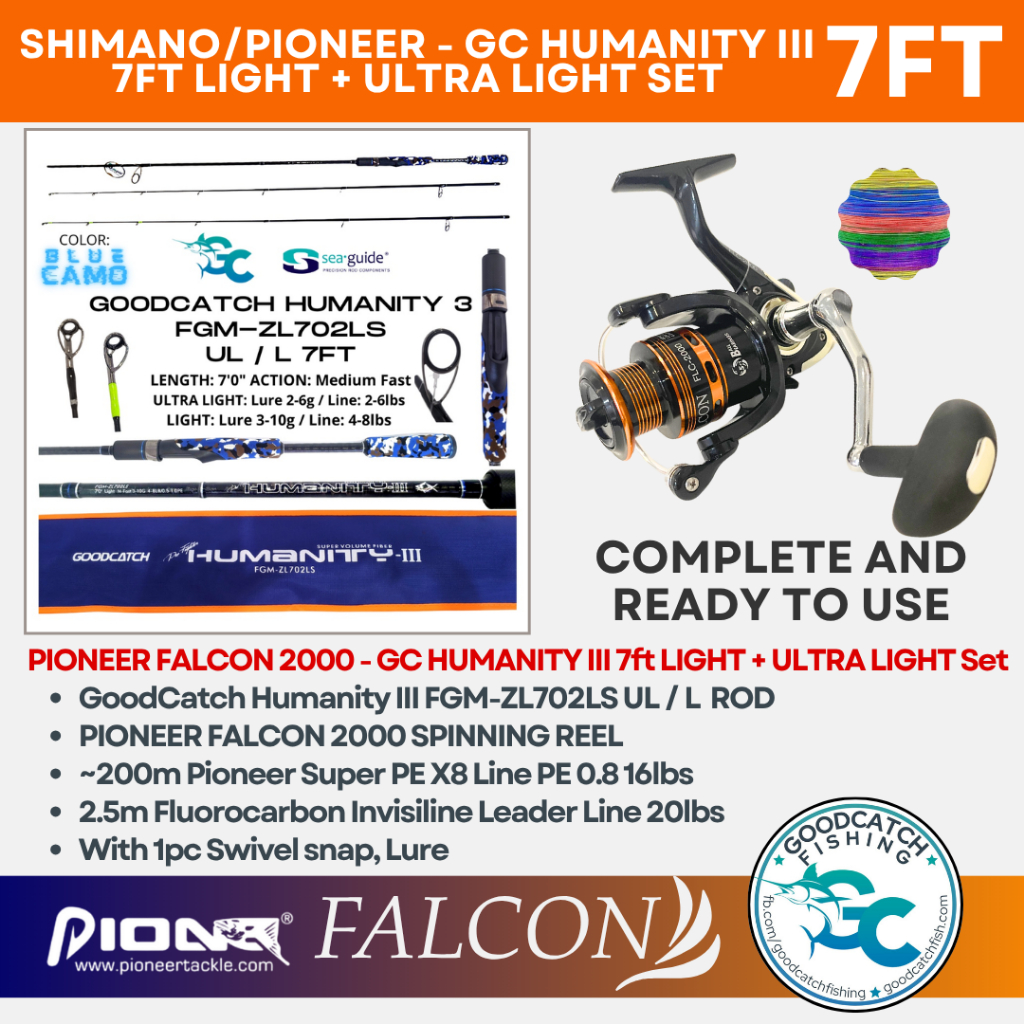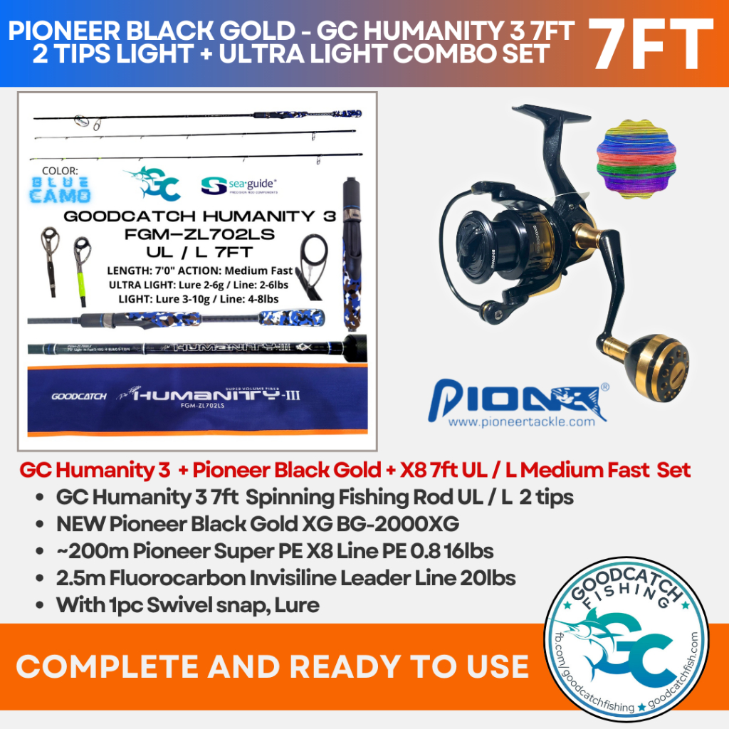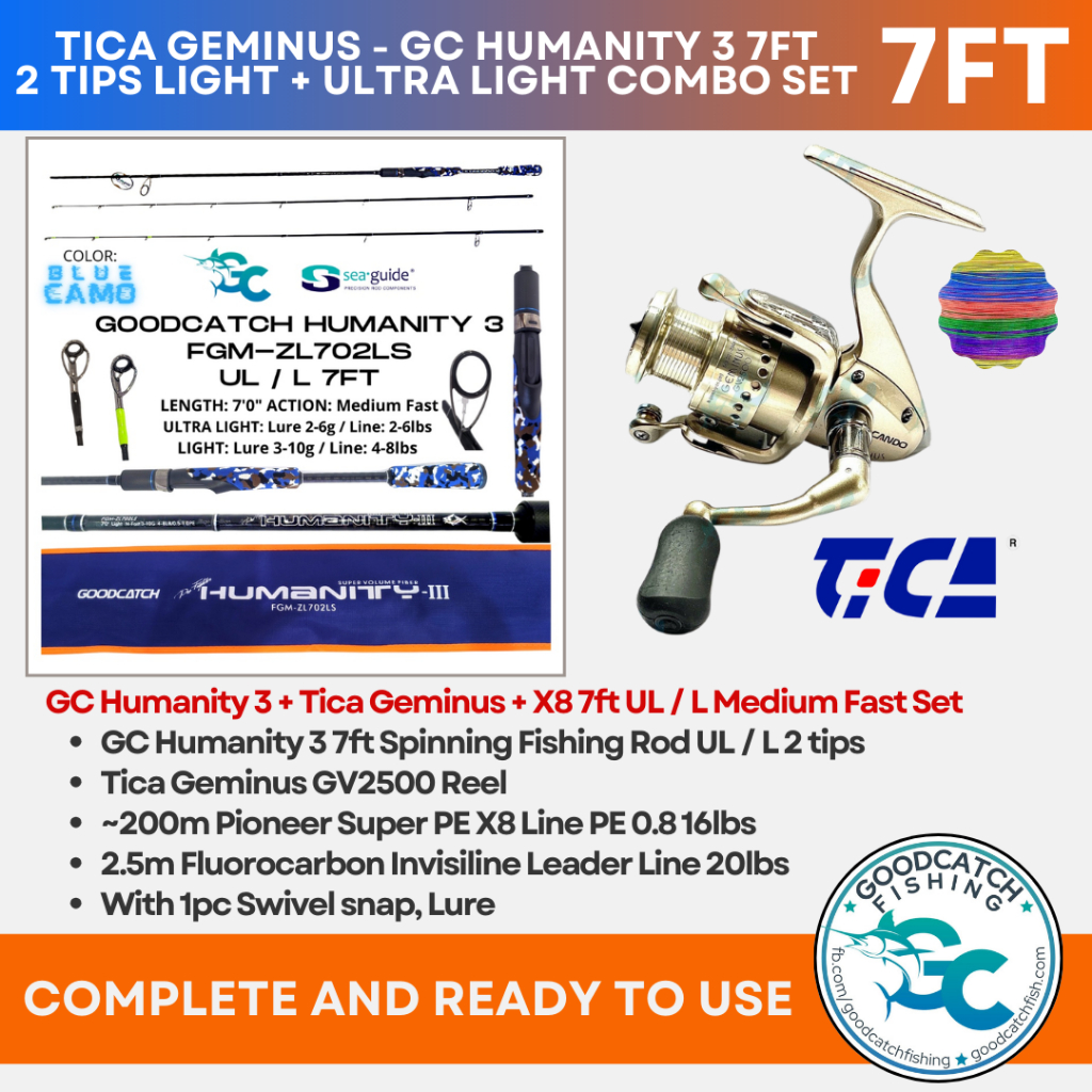 GOODCATCH GC HUMANITY 3 7ft + TICA / PIONEER 2 TIPS UL / L SPINNING COMBO FISHING ROD AND REEL SET