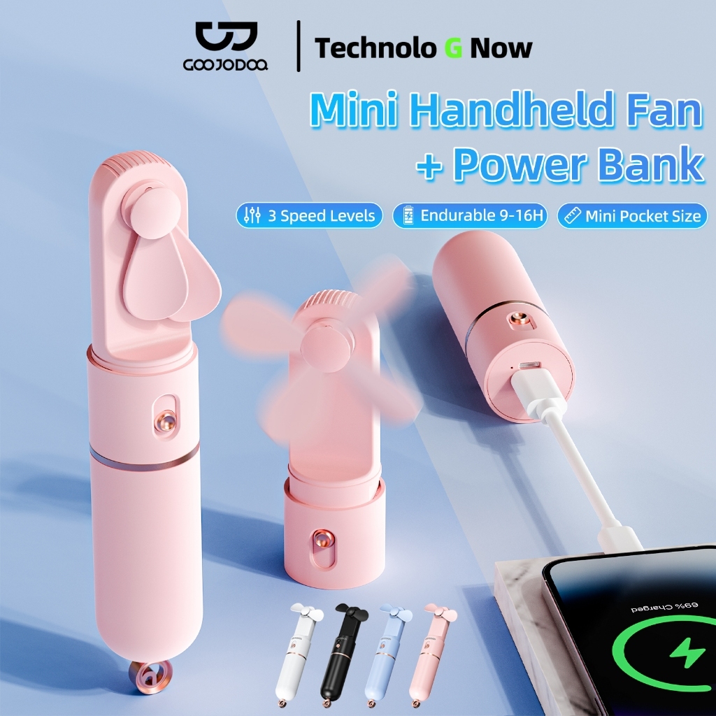 GOOJODOQ 2500 mAh Mini Fan Rechargeable Powerbank for School Portable Kids Electric Fan Small USB