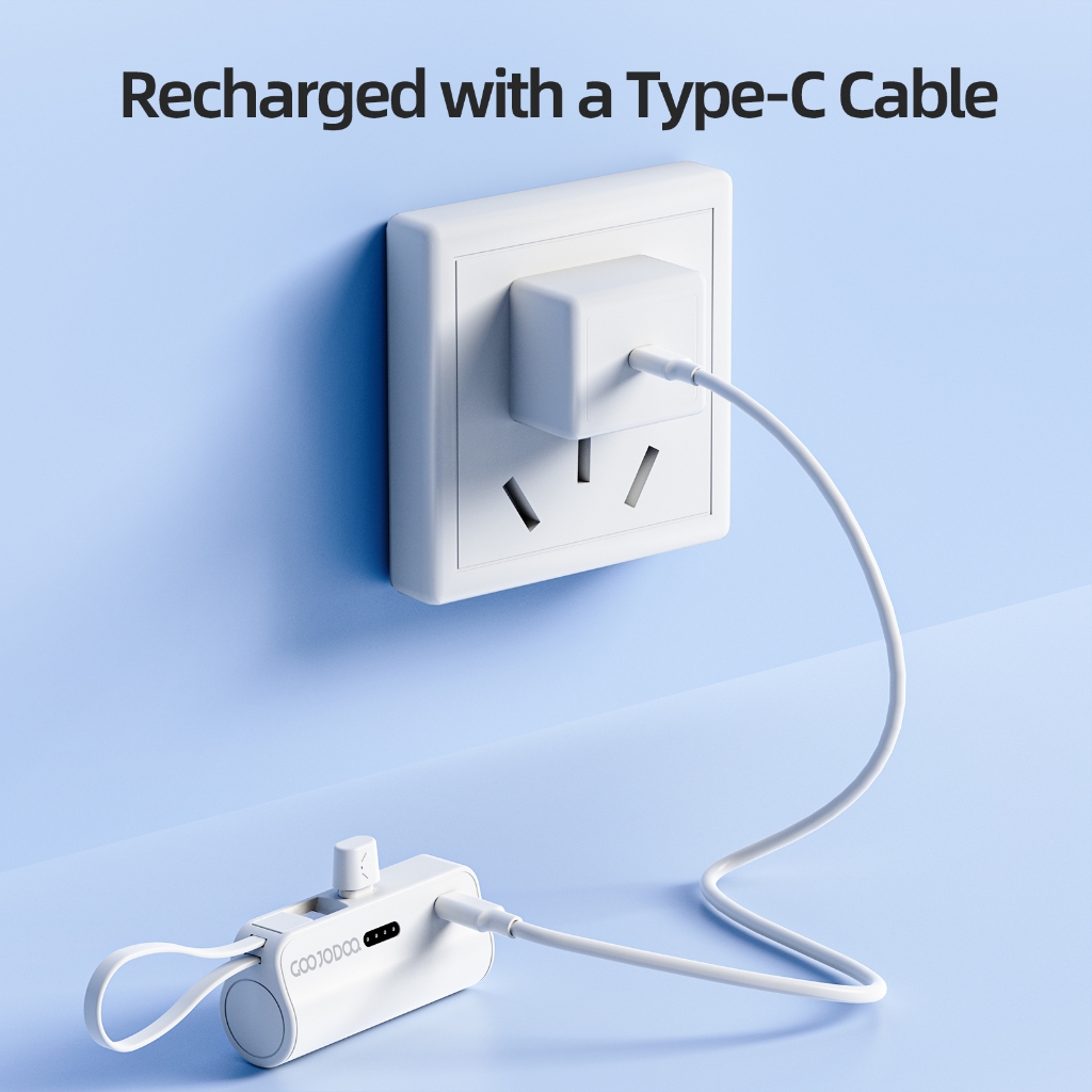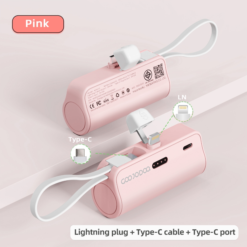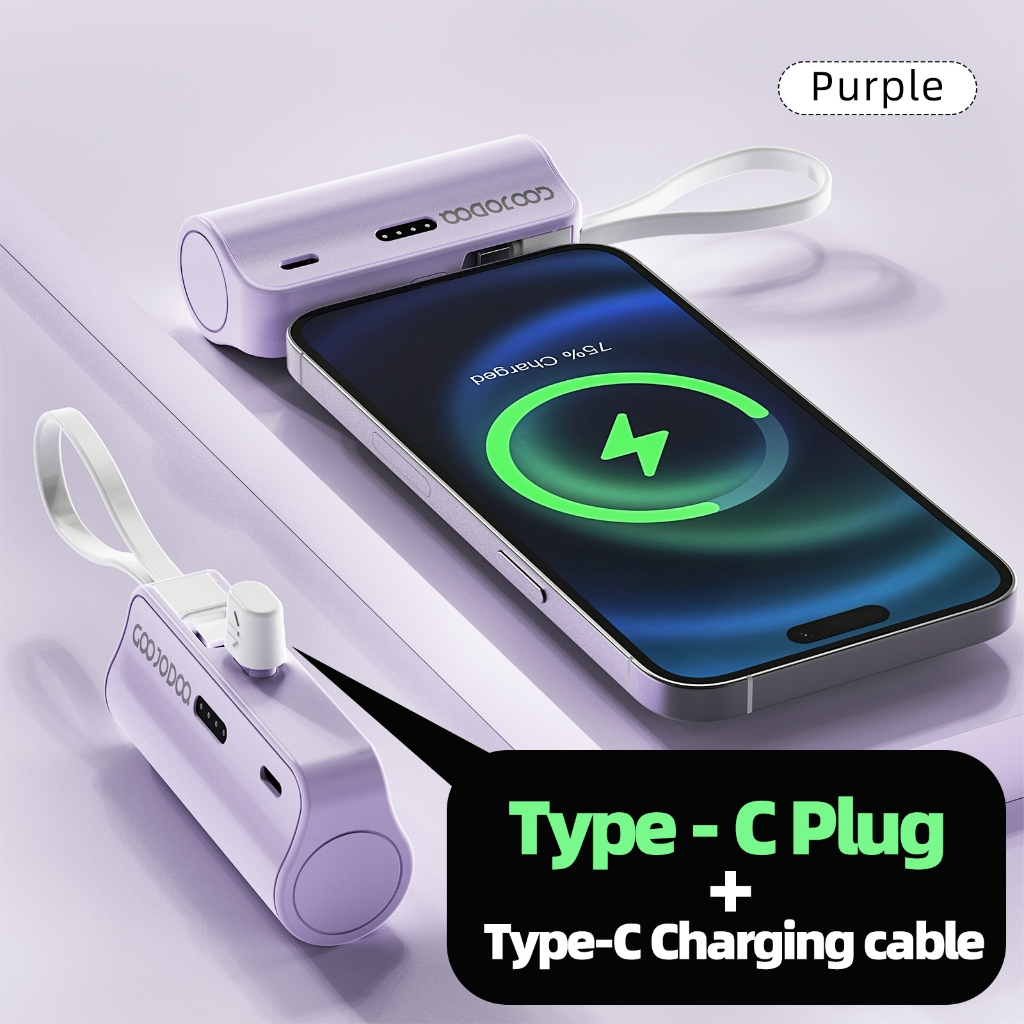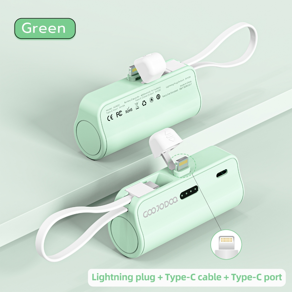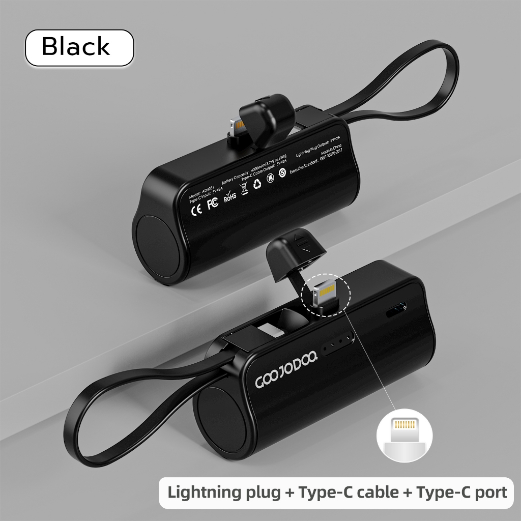 GOOJODOQ 5000mah Mini Powerbank for iphone Android Phone Built in Cable Small Portable Type C Charge