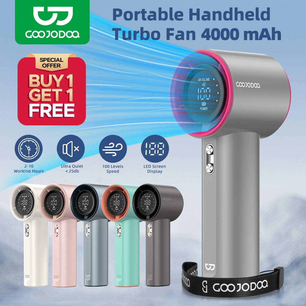 GOOJODOQ Fan 4000 mAh Turbo Mini Fan Rechargeable Handheld Portable Strong Wind Electric Jet Hand