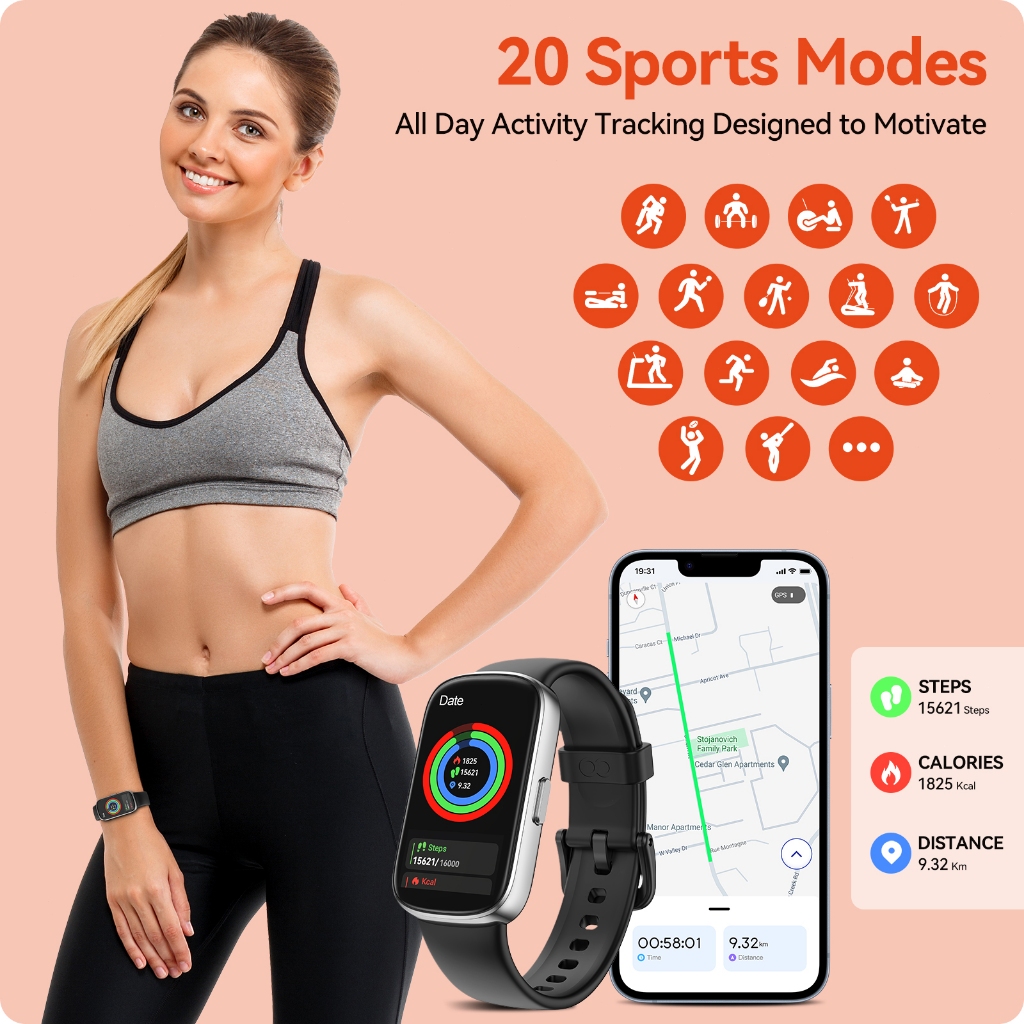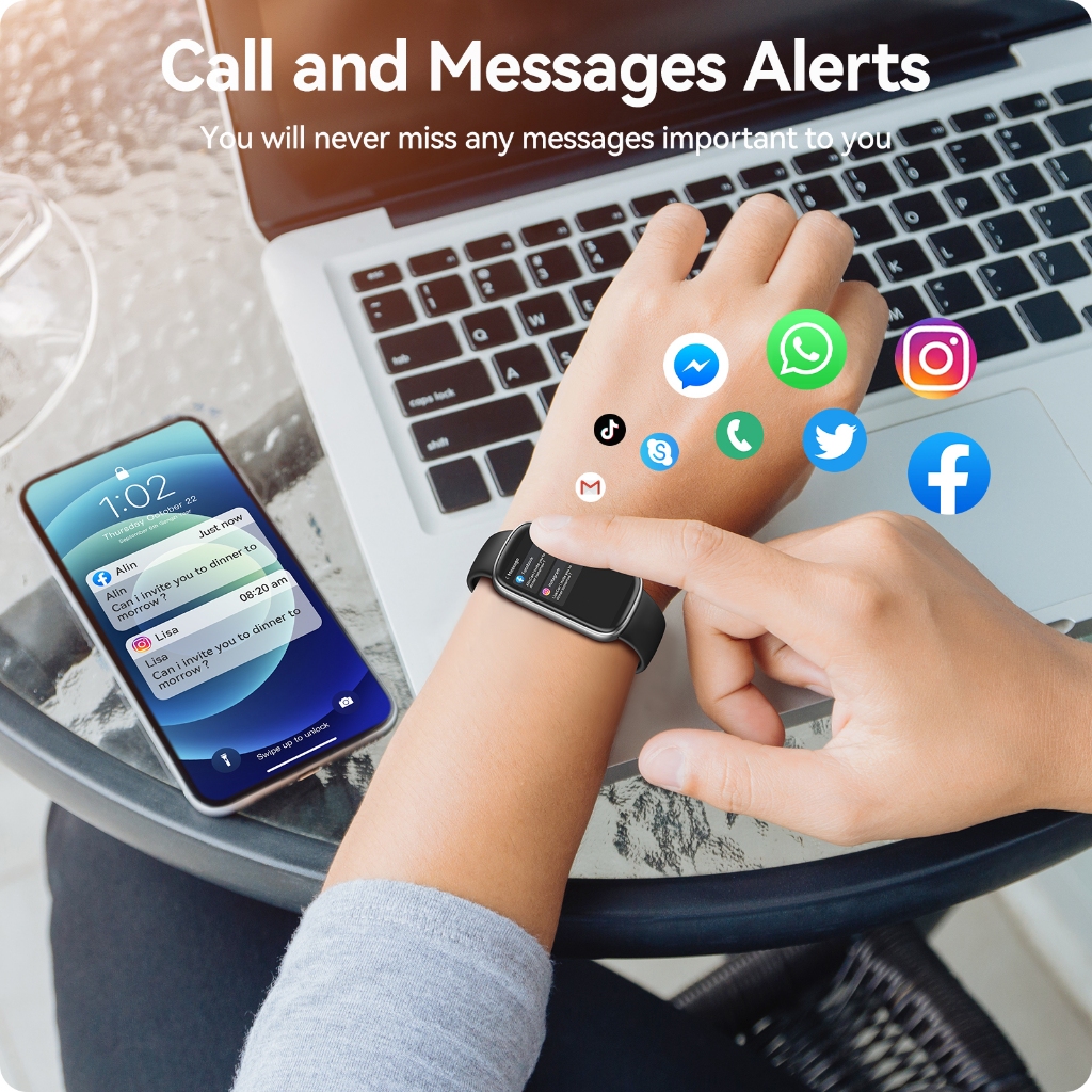 GOOJODOQ IP68 Smart Watch Waterproof Health Monitor Bluetooth Call Fitness Tracker Long Battery