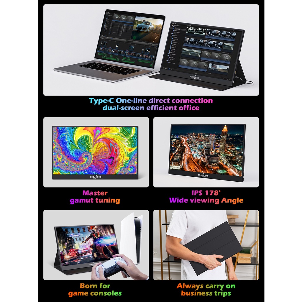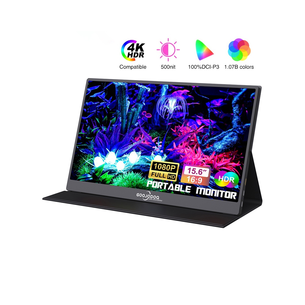 GOOJODOQ Laptop Portable Display 15.6-inch 1920*1080P FHD IPS US-C HDMI for iPad PC Mac Phone Xbox Switch PS4