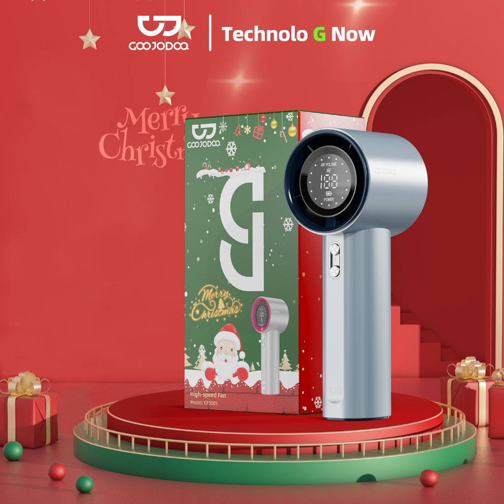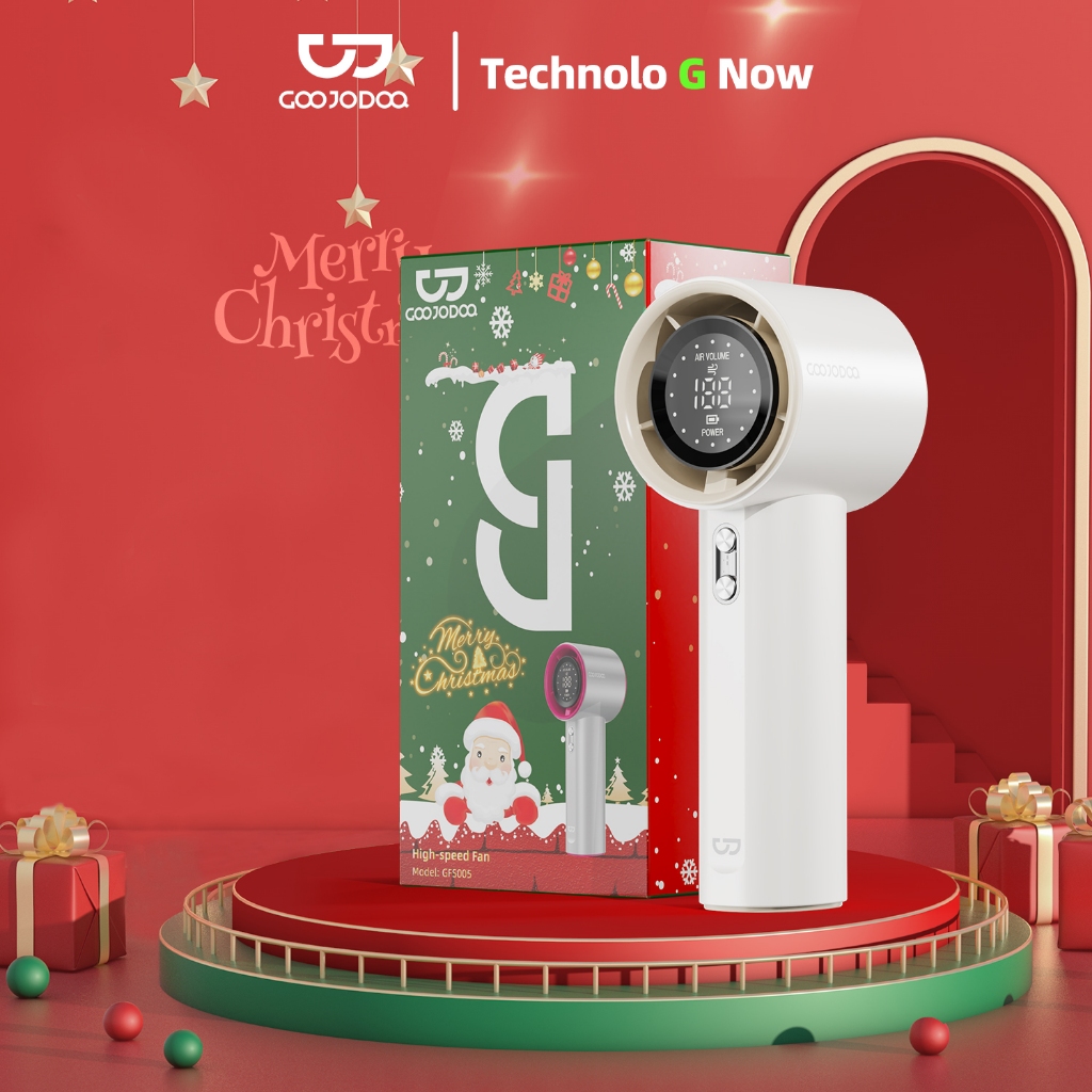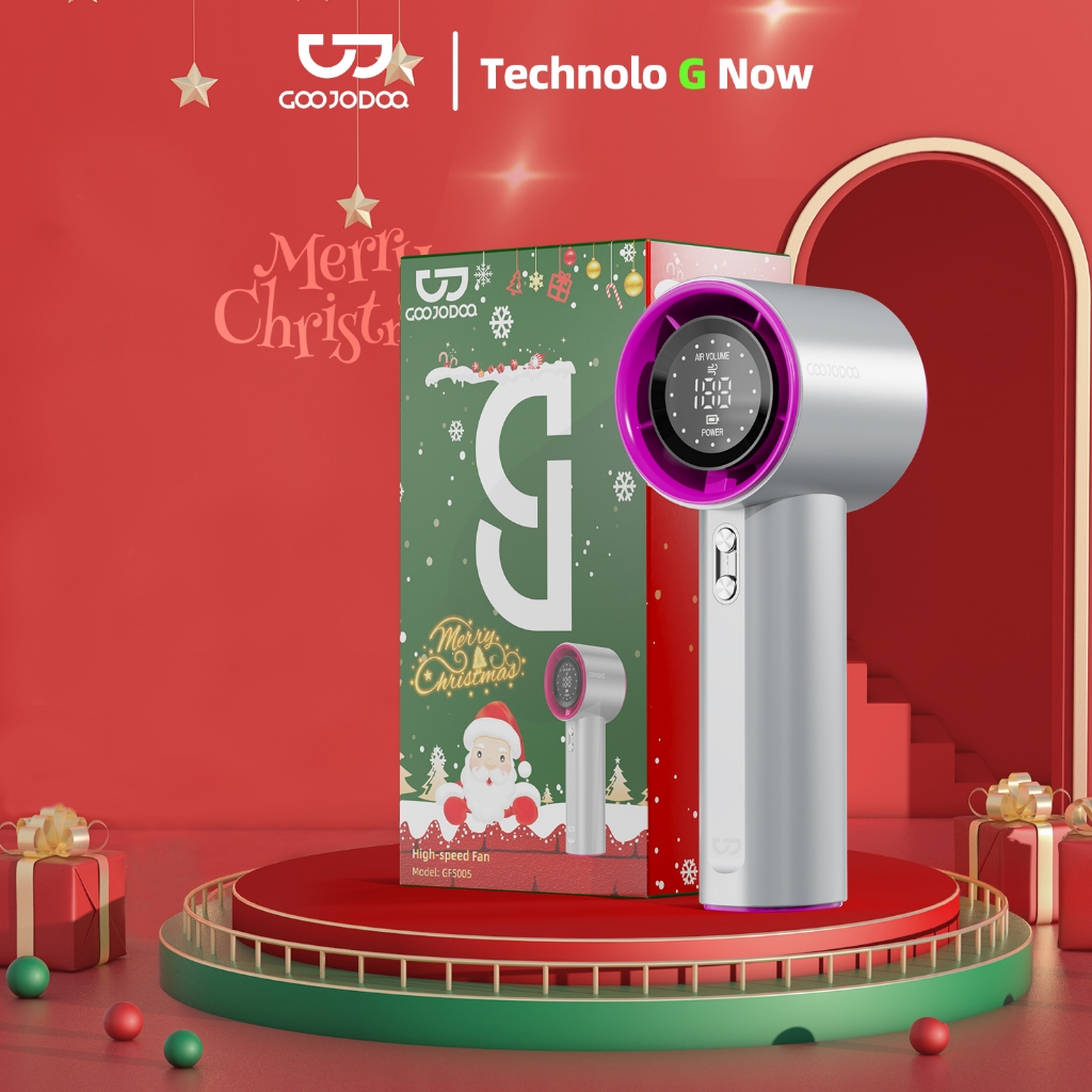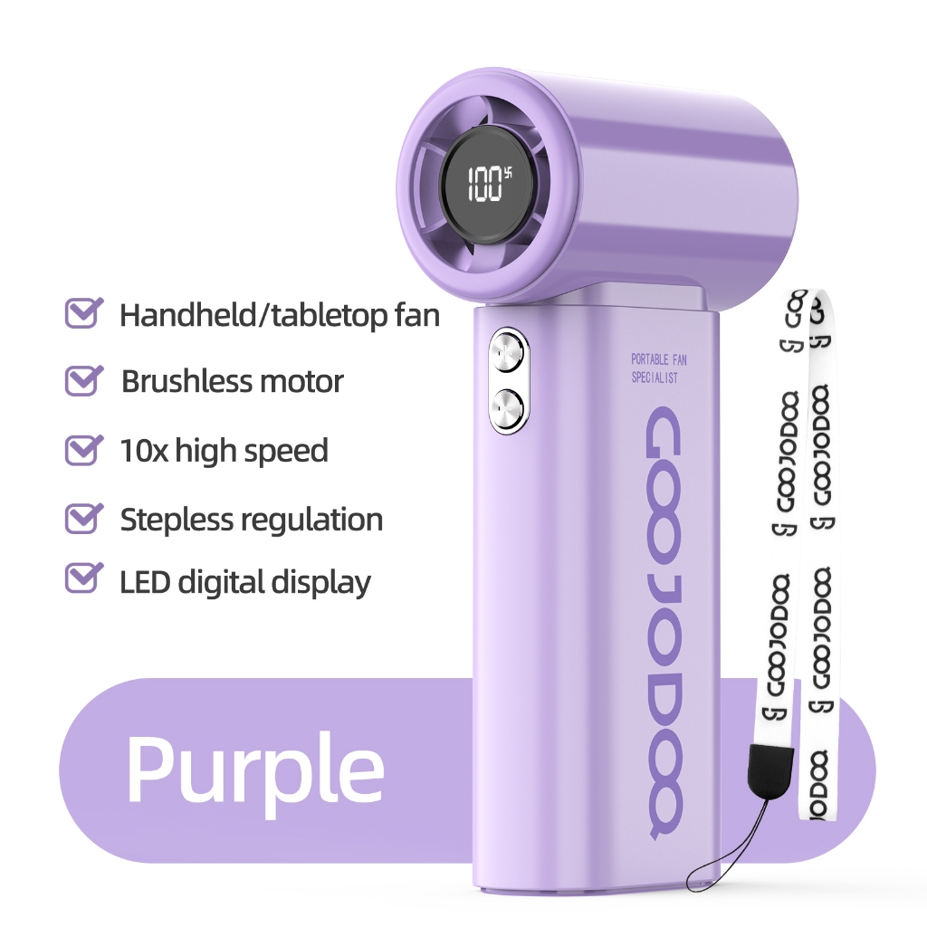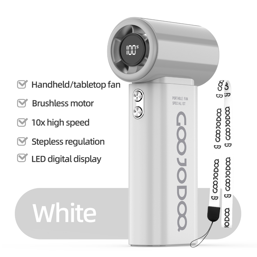 GOOJODOQ Mini Fan 4000 mAh Turbo Rechargeable Handheld Portable Strong Wind Electric Jet Hand
