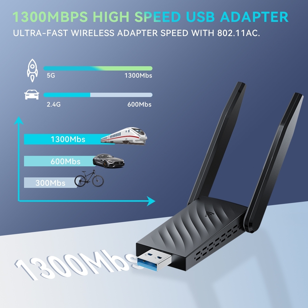 GOOJODOQ USB Wifi Dongle for Pc 5g/2.4 Adapter Laptop 1300mbps USB 3.0 2 Wireless Network Connection