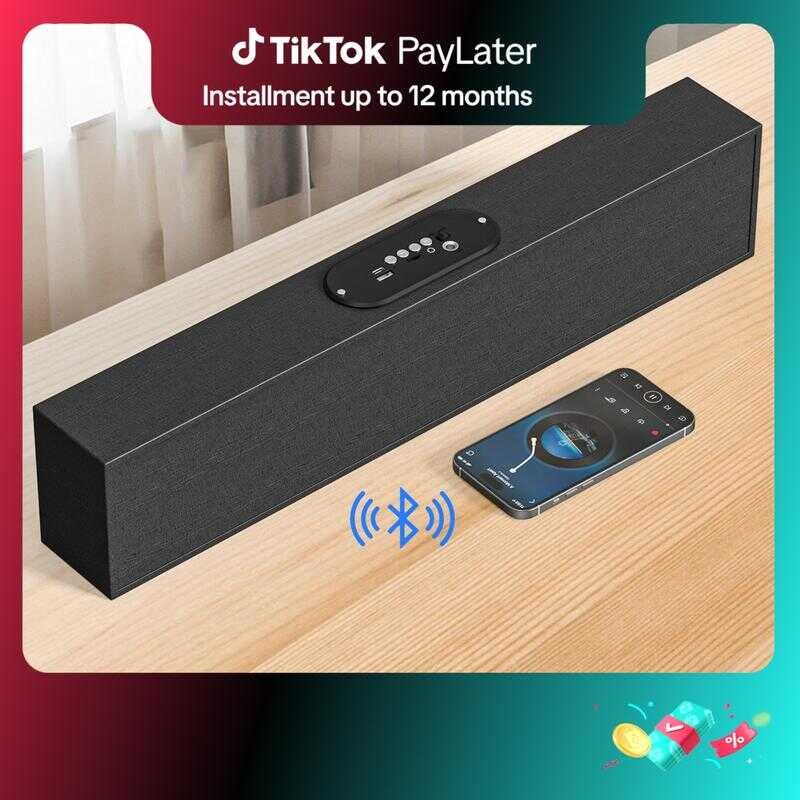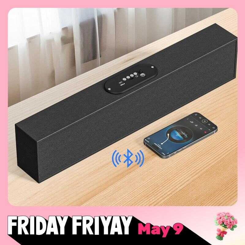 GOOJODOQ Wooden Bluetooth Soundbar- AB4084 LED Desktop Speaker Supports Wired Connection + Bluetooth