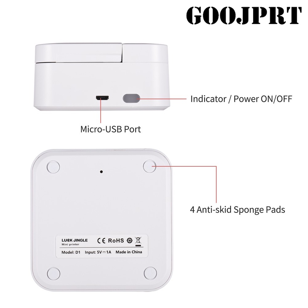 GOOJPRT D1 Luck Jingle Portable Bluetooth Thermal Printer (203dpi) 1000mAh Lithium-ion Battery w/ fr