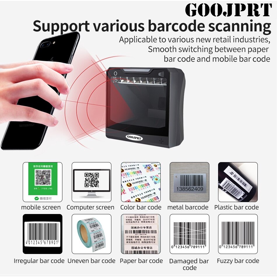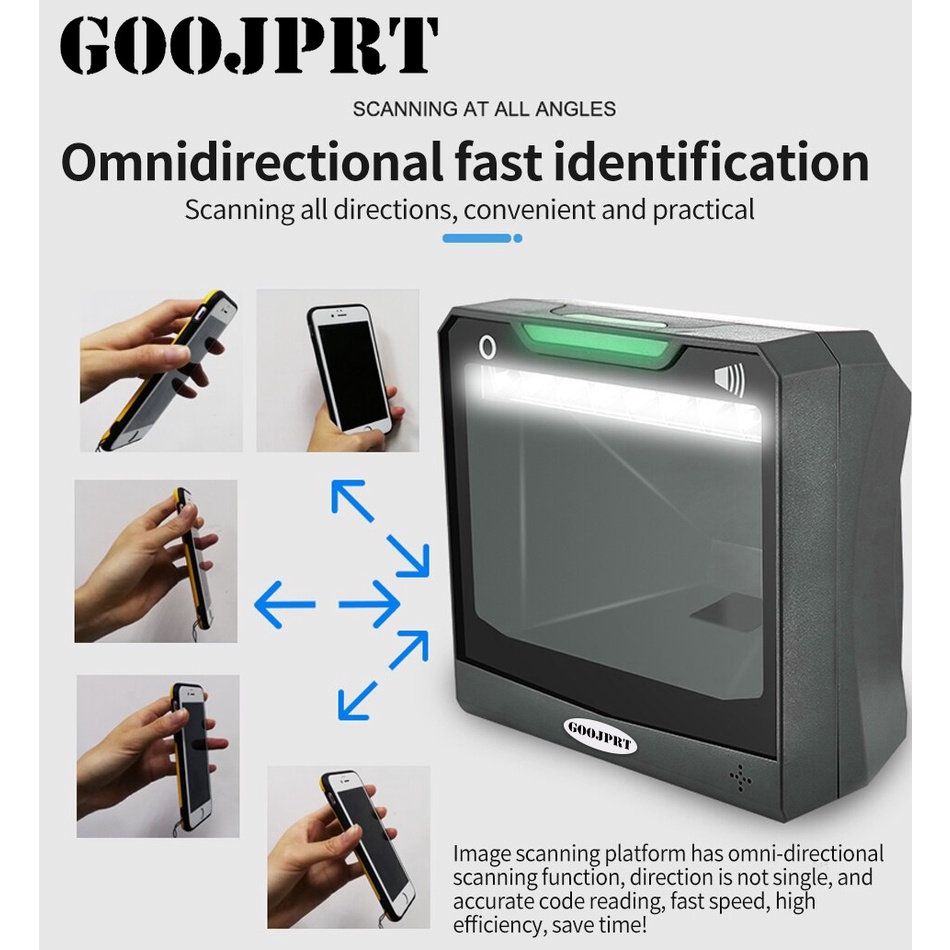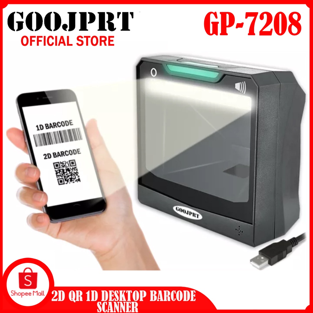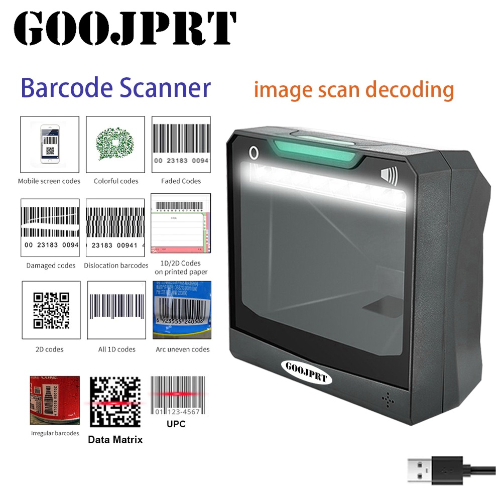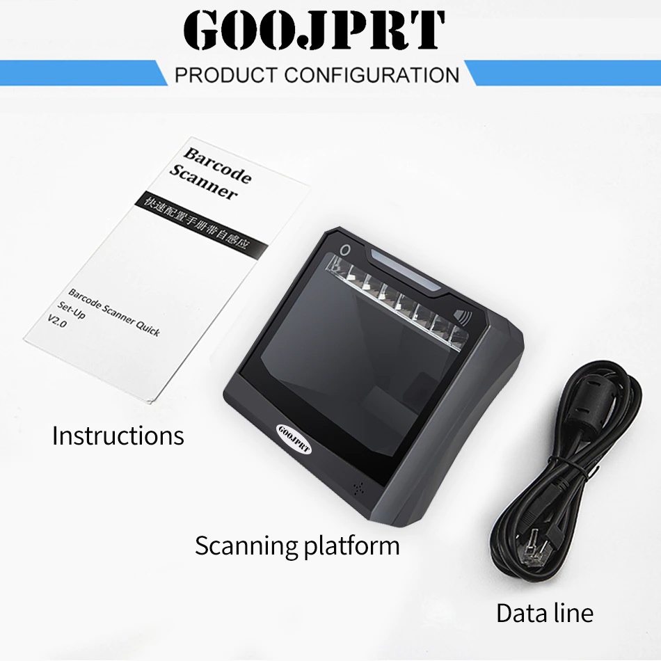 GOOJPRT GP-7208 1D 2D Desktop Barcode Platform Scanner USB Wired Barcode Reader for PC, Windows, Mac