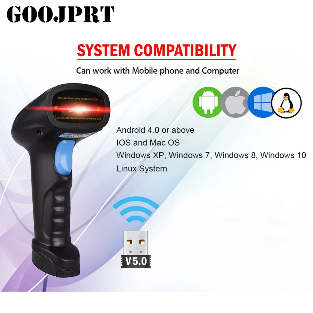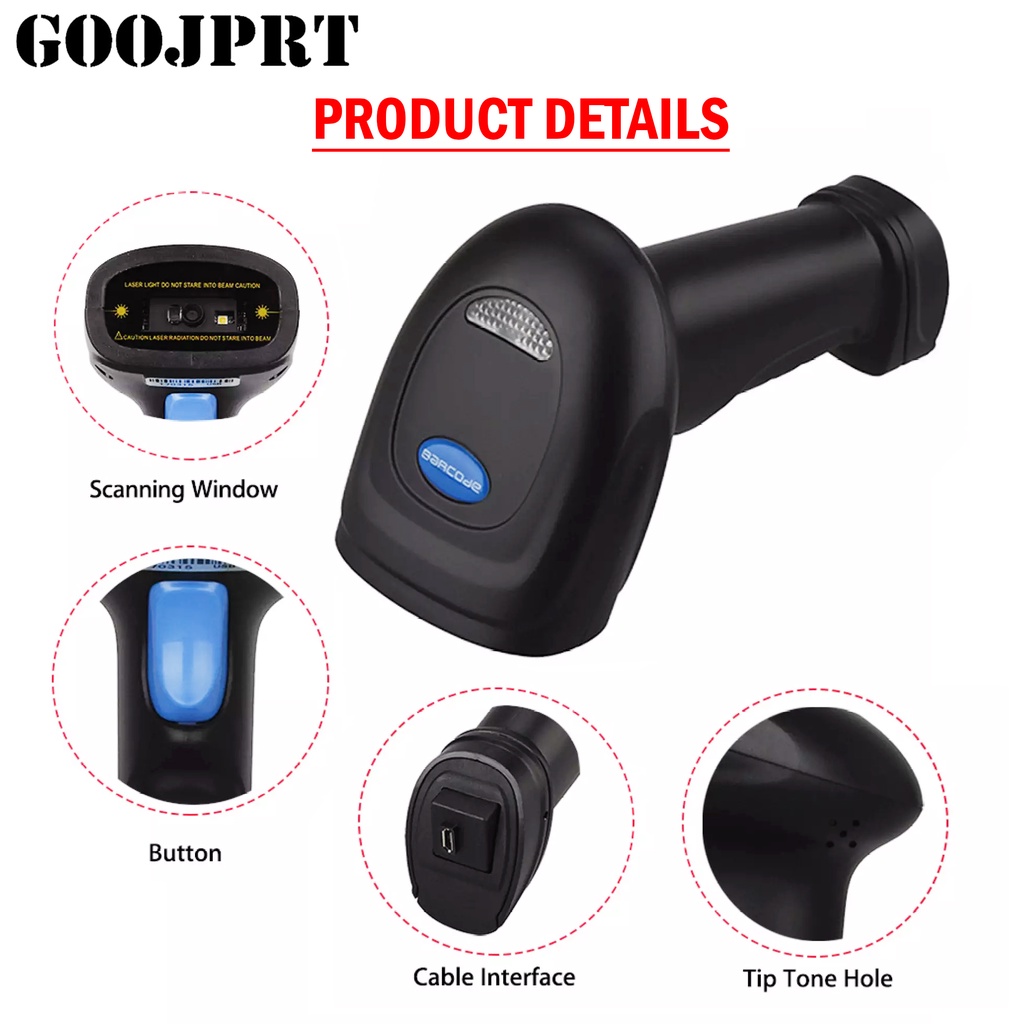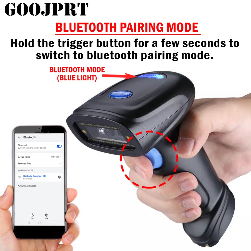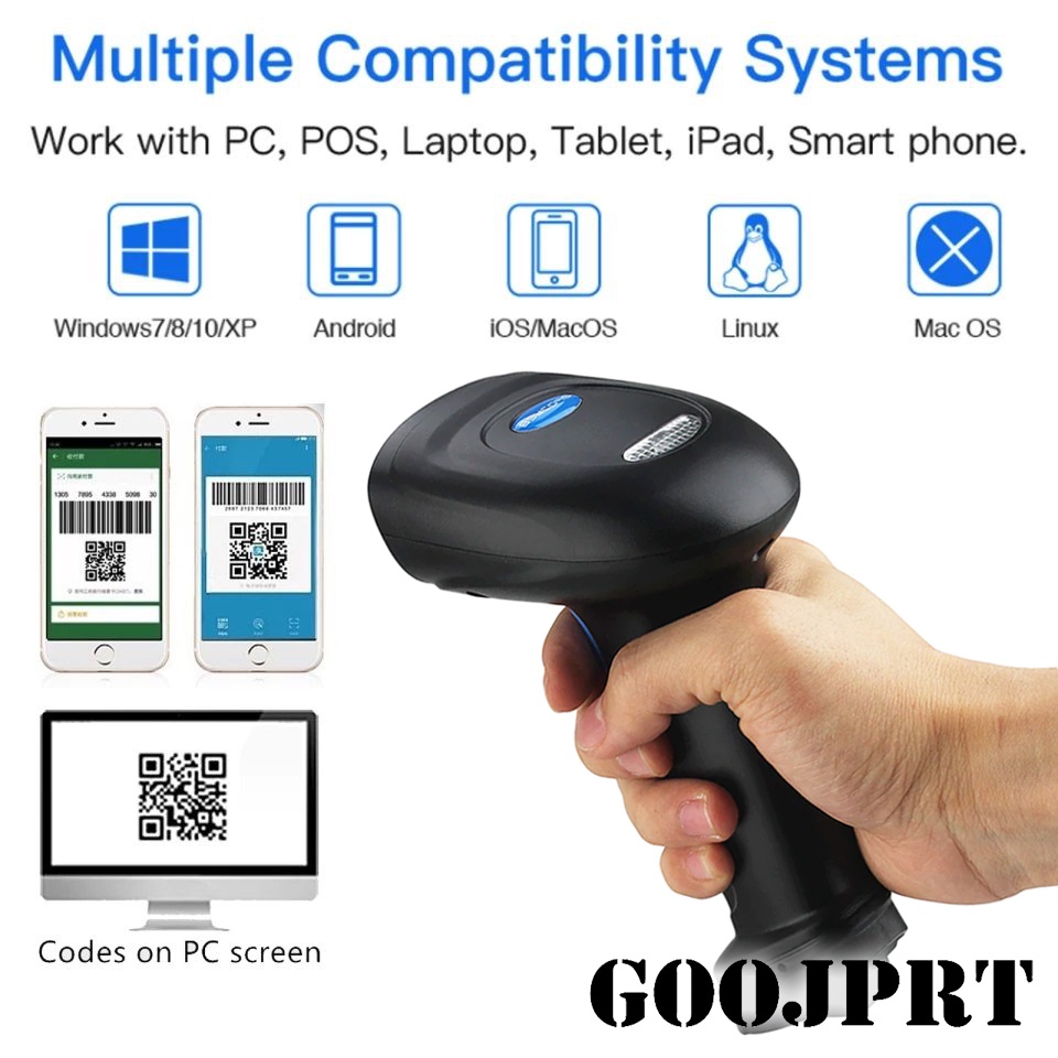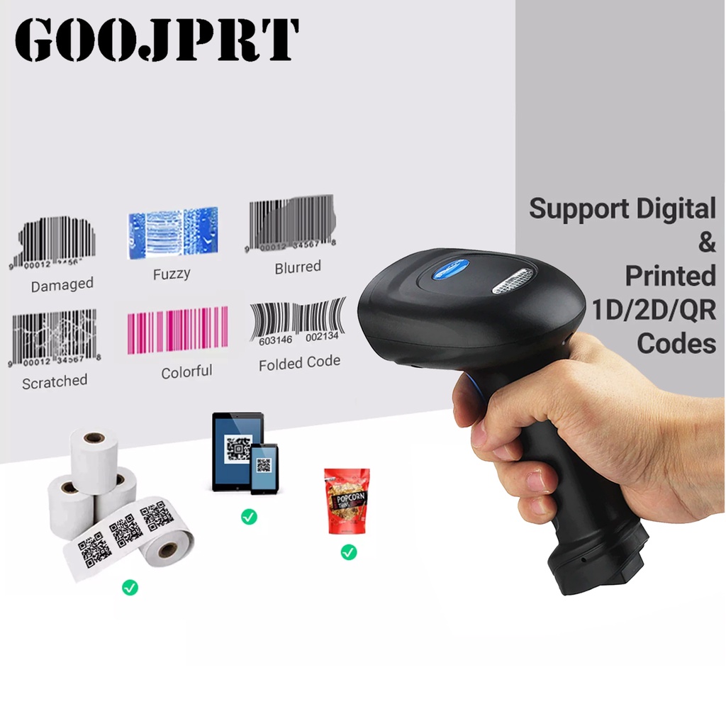 GOOJPRT GP-BWM3 1D 2D QR Codes Portable Wireless Bluetooth Barcode Scanner for POS P2P Compatible wi