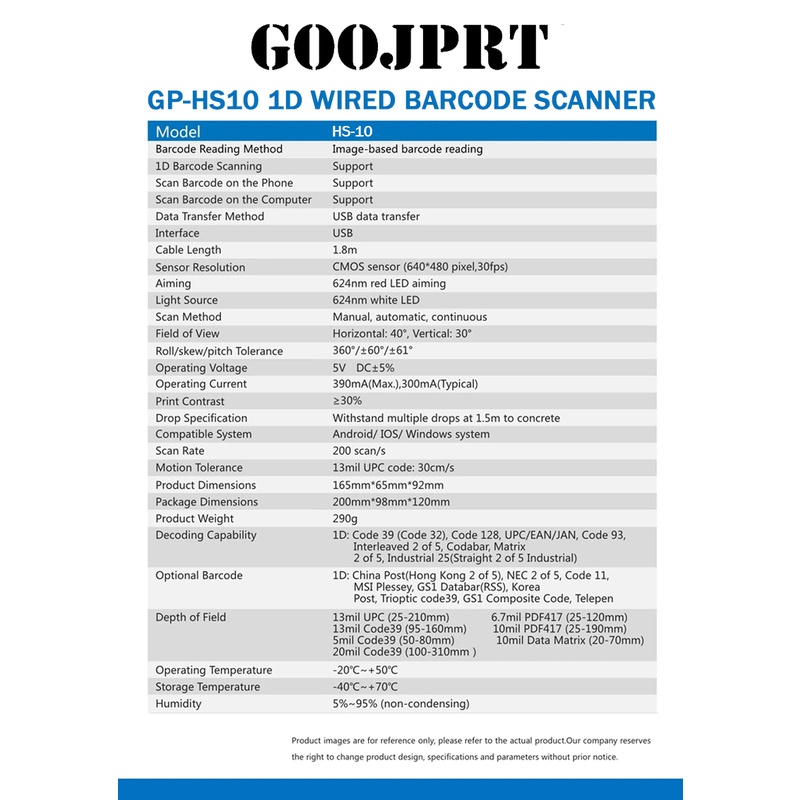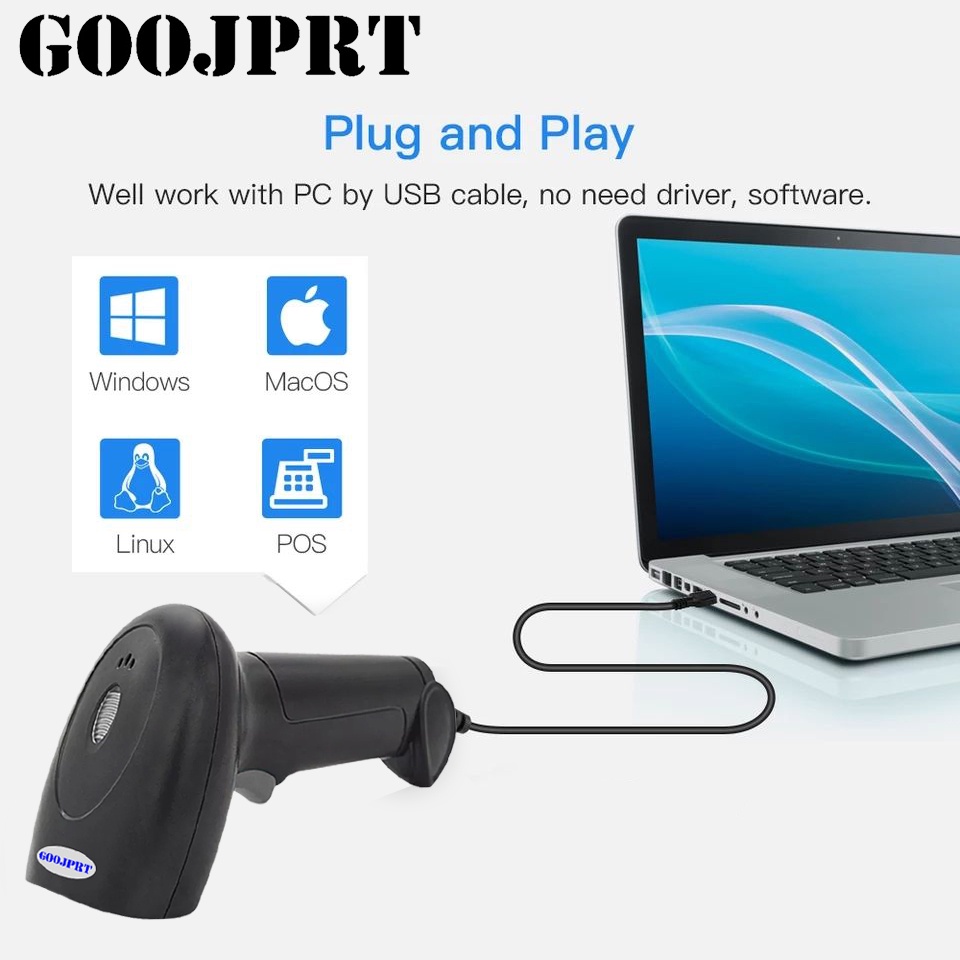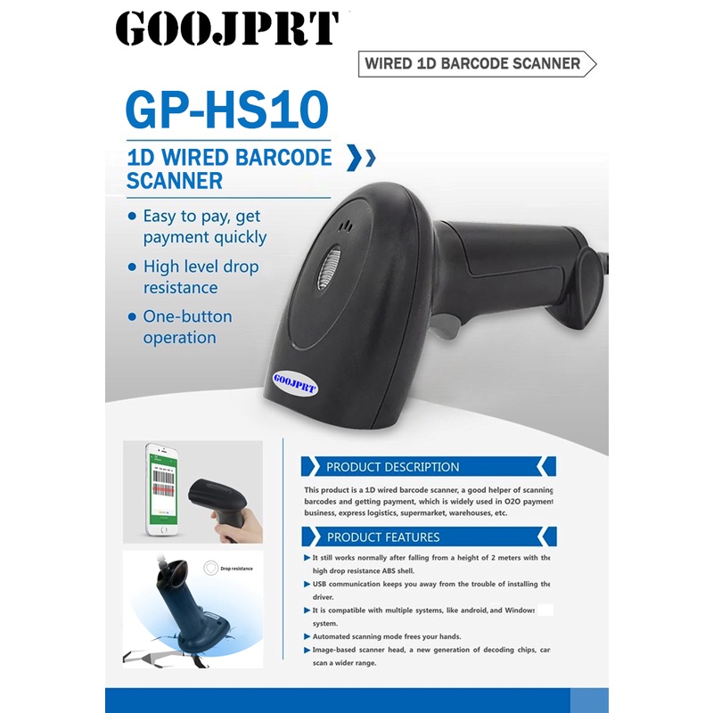 GOOJPRT GP-HS10 1D Barcode Scanner Wired USB Type Portable for POS P2P