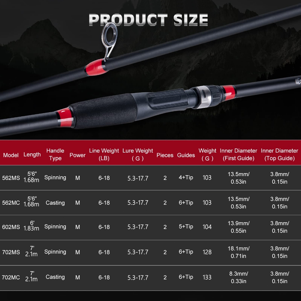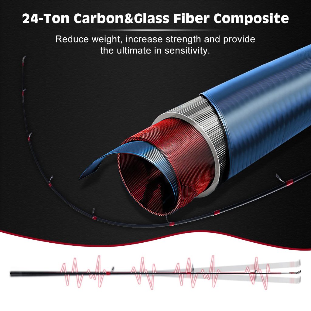 GOTURE 24T Carbon Glass Fiber Composite Spinning Casting Fishing Rod M Power