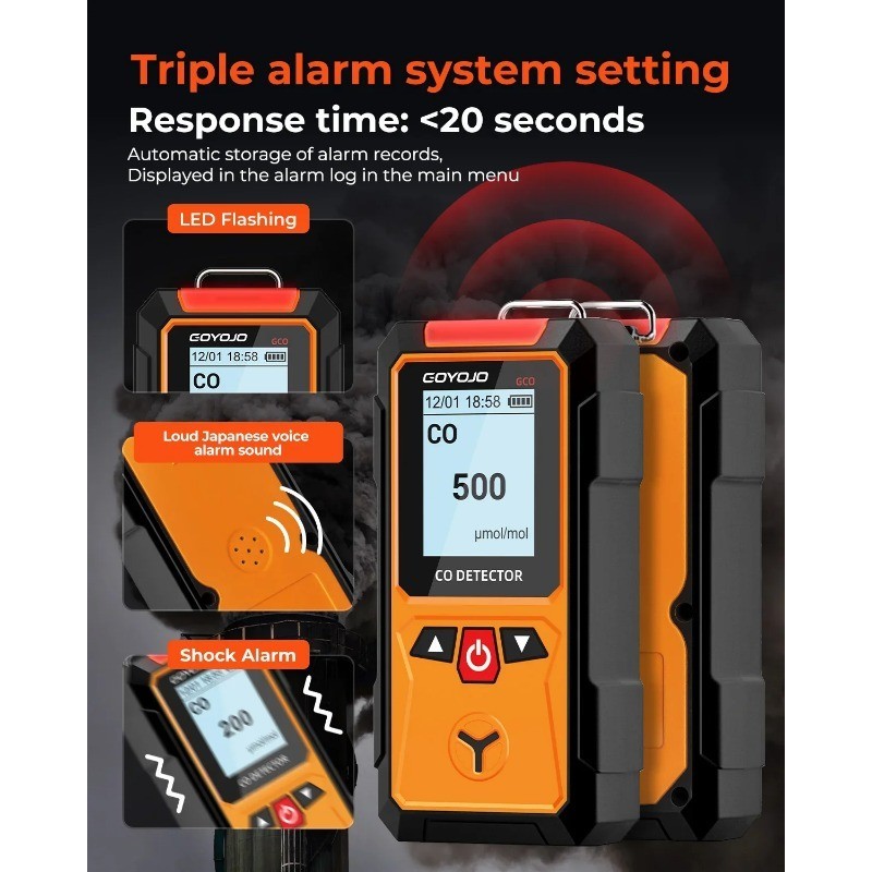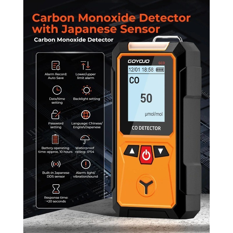 GOYOJO Gas Detector Meter 4 in 1 Oxygen O2 Carbon Monoxide CO H2S Ex Combustible Gas Analyzer Leak Detector Air Quality Monitor