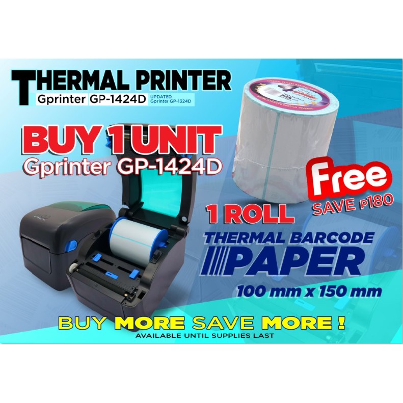 GPRINTER GP-1424D Thermal Printer +1 Free A6Thermal Sticker/Shopee Waybill Printer/Barcodes Printer