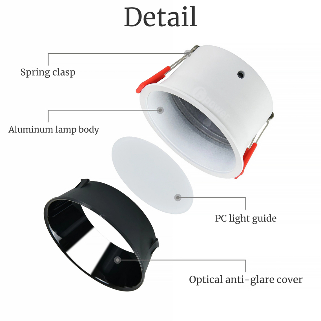 GPower LED Anti Glare PinLight 7W Spotlight 3 Color Recessed Round Downlight for Ceiling Room Office