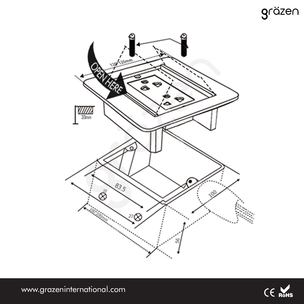 GRAZEN Dual Door Floor Socket/ Floor Outlet with 2 Gang Universal Outlet Colored Black Silver Gold