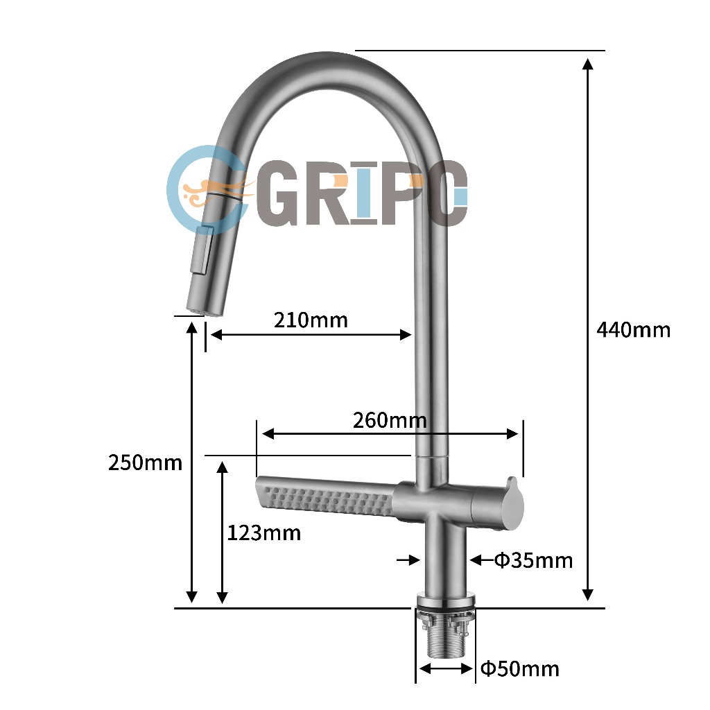 GRIPO 304 High End Stainless Flying rain pull type single cold kitchen faucet GP1170