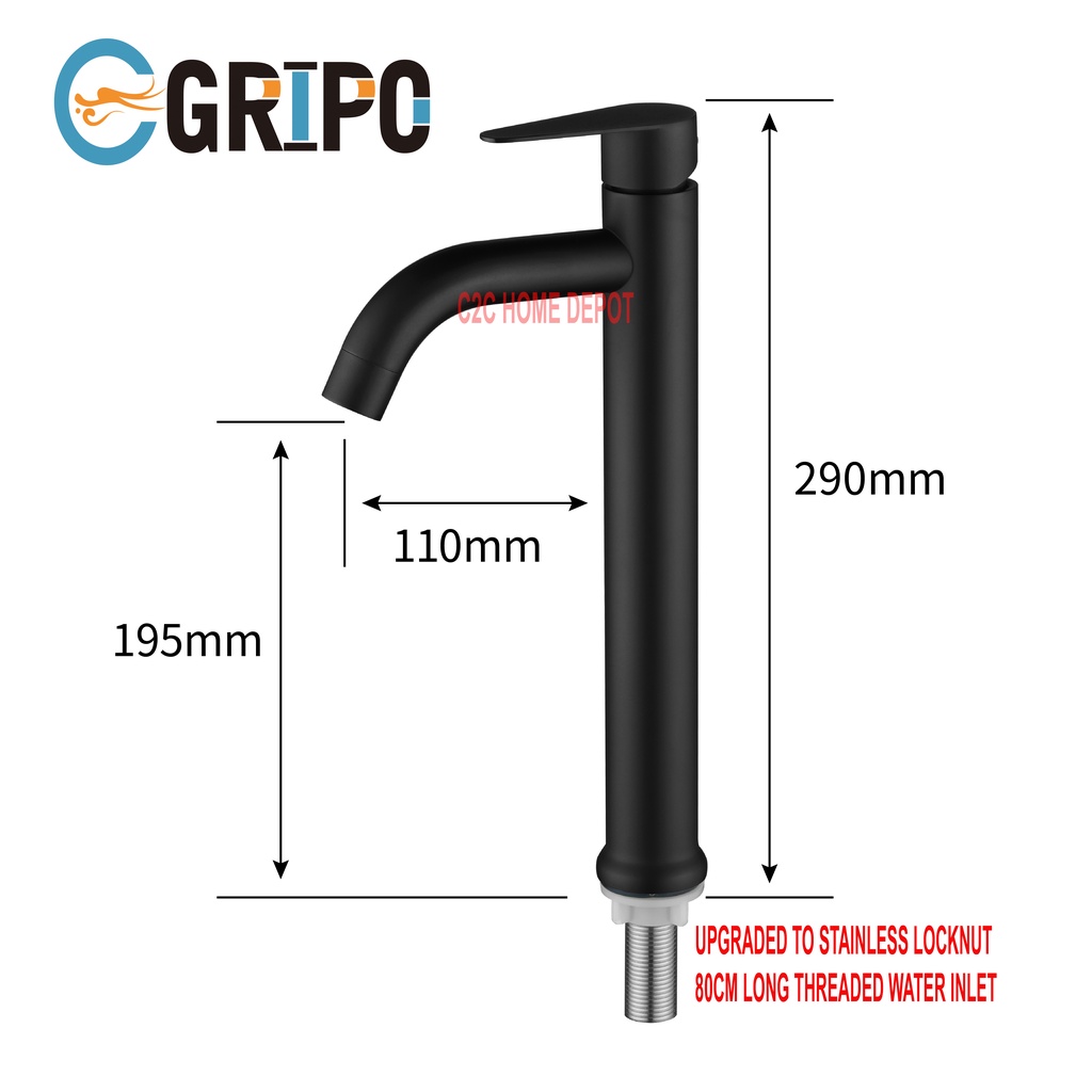 GRIPO 304 stainless Big Body Type ARC Type Long BLACK lavatory single cold GP319