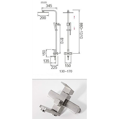 GRIPO 304 stainless Square type shower set matte (GR0019)