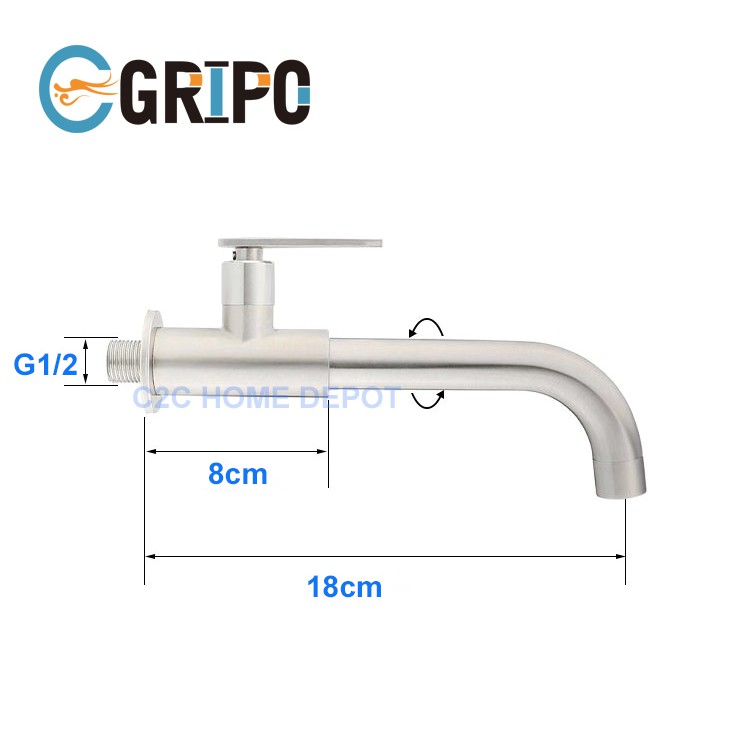 GRIPO High End 304 Stainless Lever Handle Rotatable wall mount faucet bath laundry kitchen