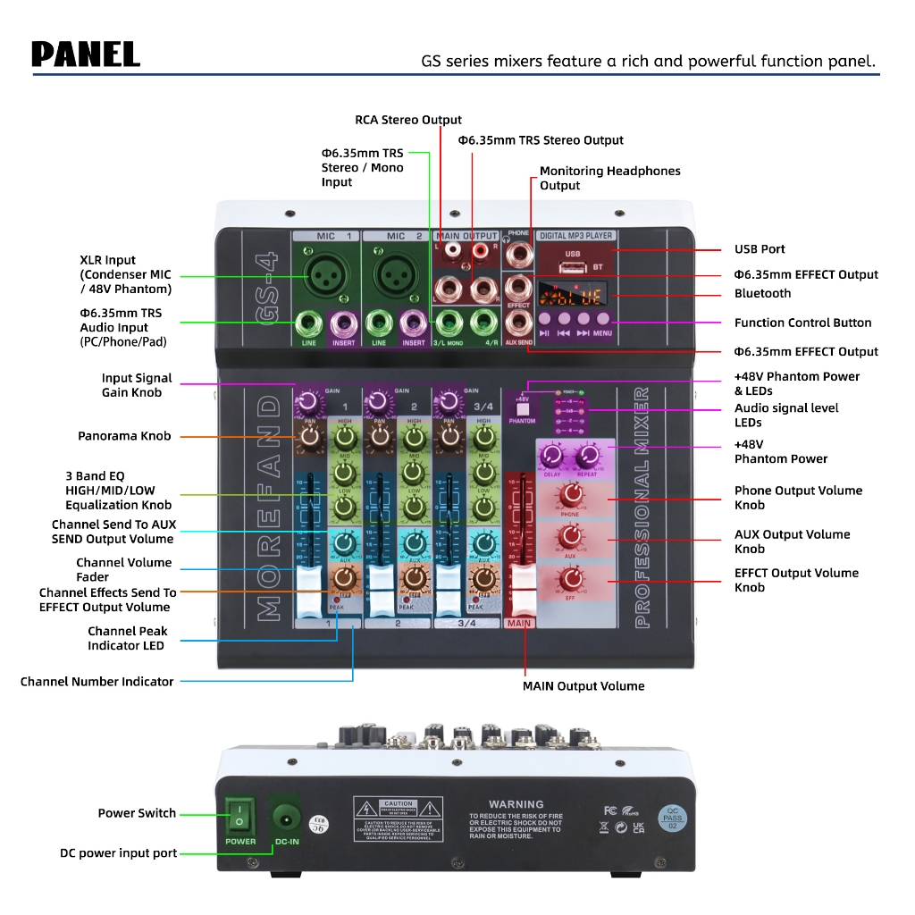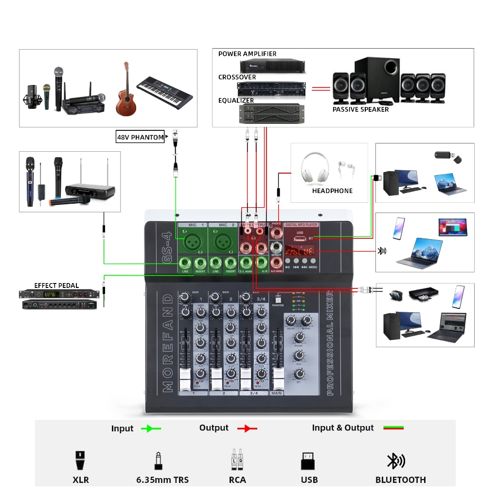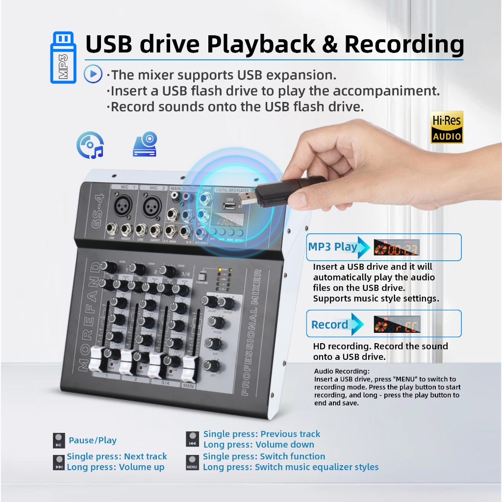 GS-4/GS-7 Professional Audio Mixer 4/7-channel na built-in EQ/recording function for living stage