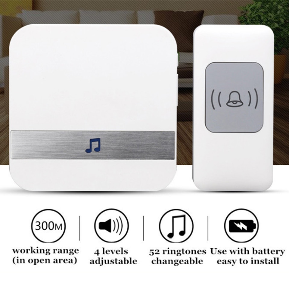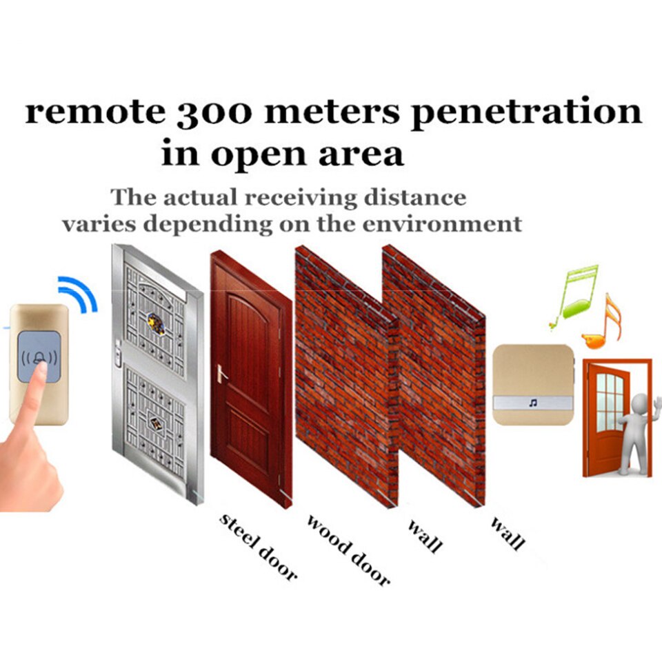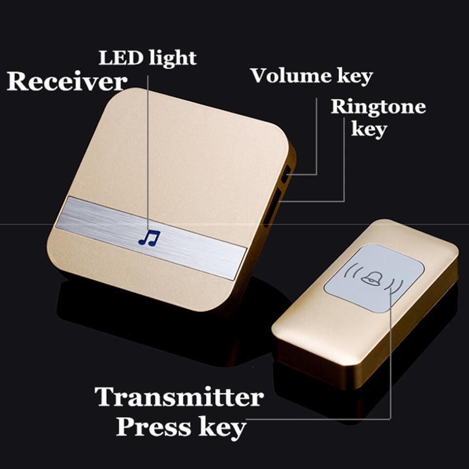 GSE Wireless Doorbell Waterproof 300m Remote LED Light Battery Door Bell 1 Button Receiver Home