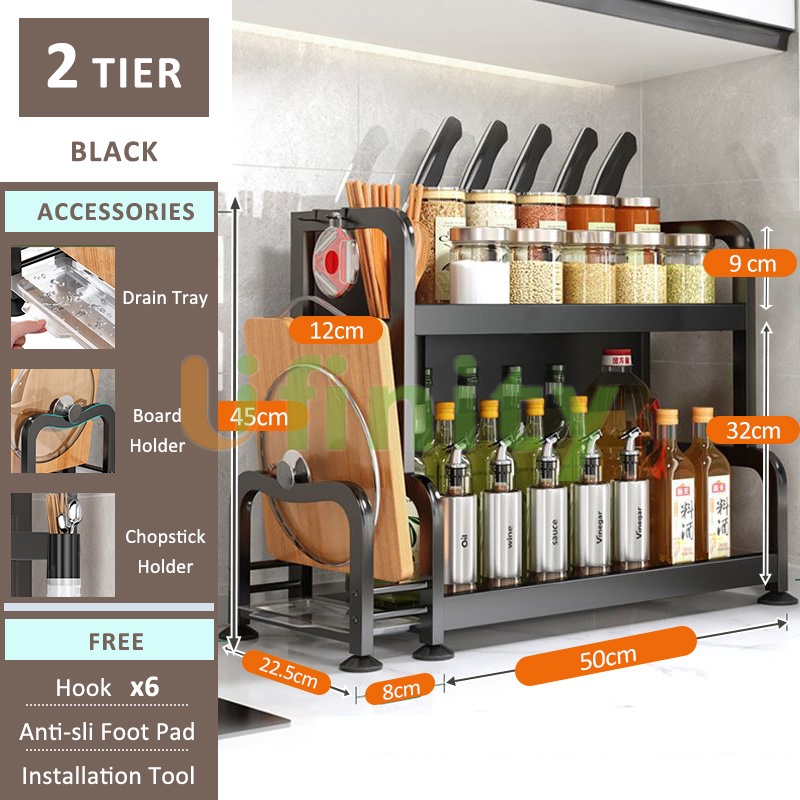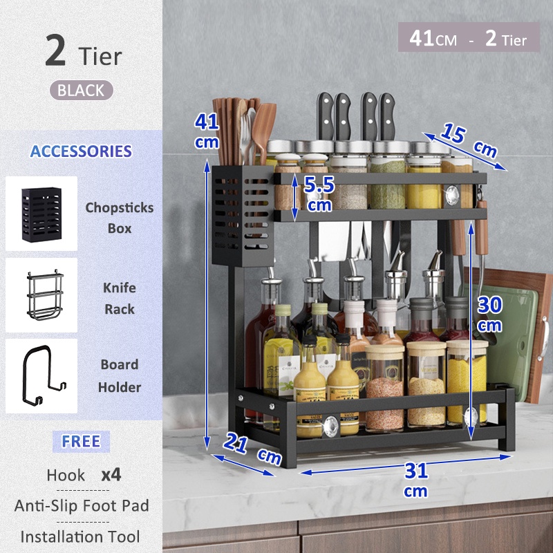 GSlife 2/3 Tiers Kitchen Spice Rack Condiment Rack Seasoner Rack Kitchen Organizer