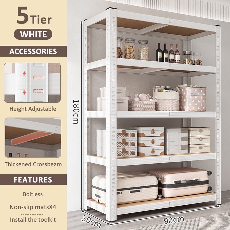 GSlife 3/5/6 Layers Metal Wood Rack Steel Shelf Rack Heavy Duty Stainless Shelf Storage Rack