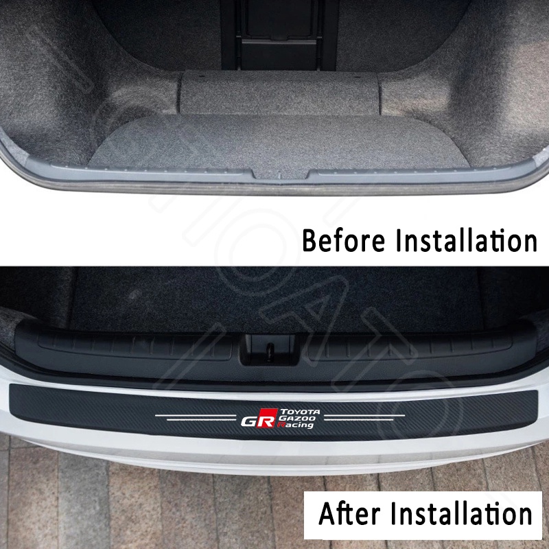 GTIOATO For Toyota GR Car Trunk Sticker Carbon Fiber Auto Rear Bumper Sticker Anti Scratch Car Sticker Car Accessories Exterior For Toyota Rush Vios Wigo Innova Fortuner Corolla Avanza Yaris Altis Majesty Sienta Hilux Hiace Camry Vellfire RAV4