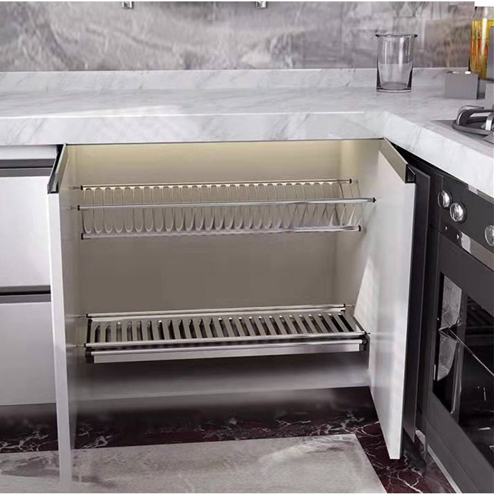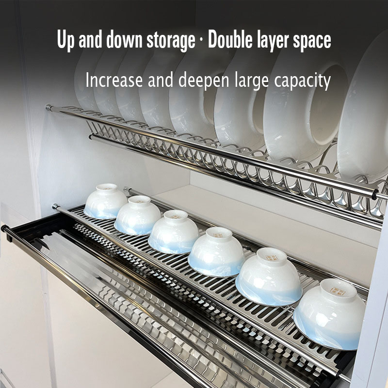 GUGA kitchen cupboard dish rack 304 stainless steel hanging double layer dish drain rack