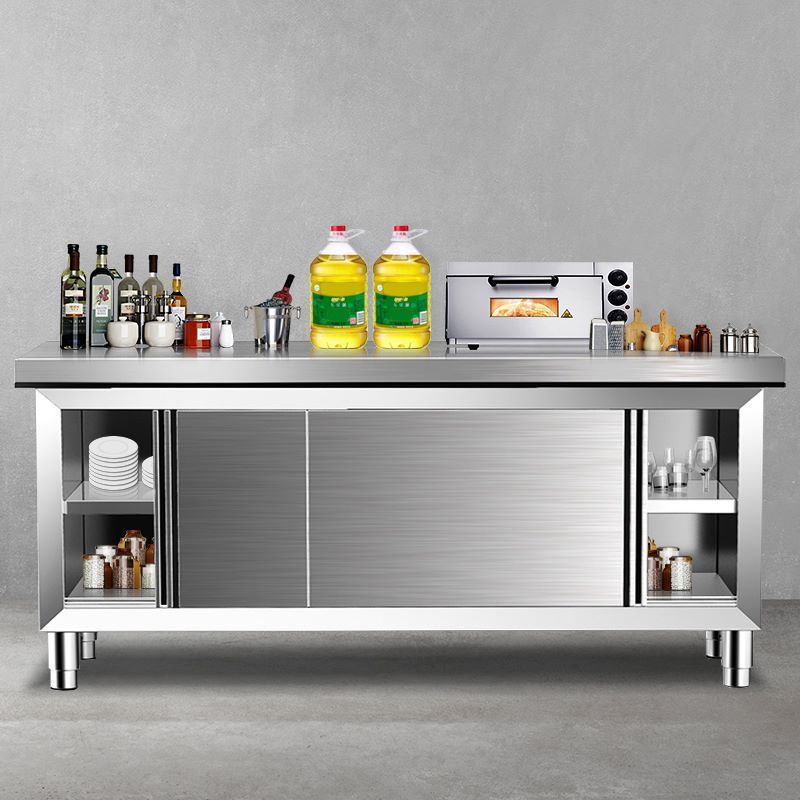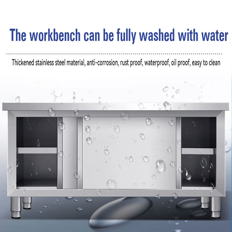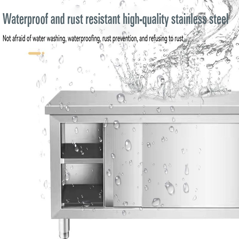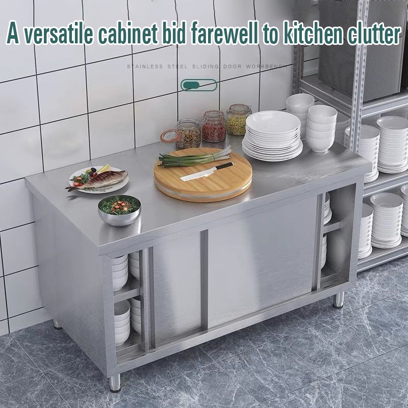 GUGA kitchen workbench 304 stainless steel sliding door workbench kitchen vegetable cutting table