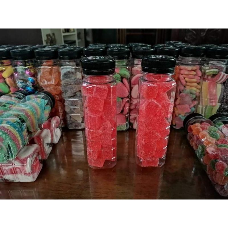 GUMMY CANDY MANGO CUBES,MANGO FRIES,STRAWBERRY CUBE,DROPS 200ML BOTTLE