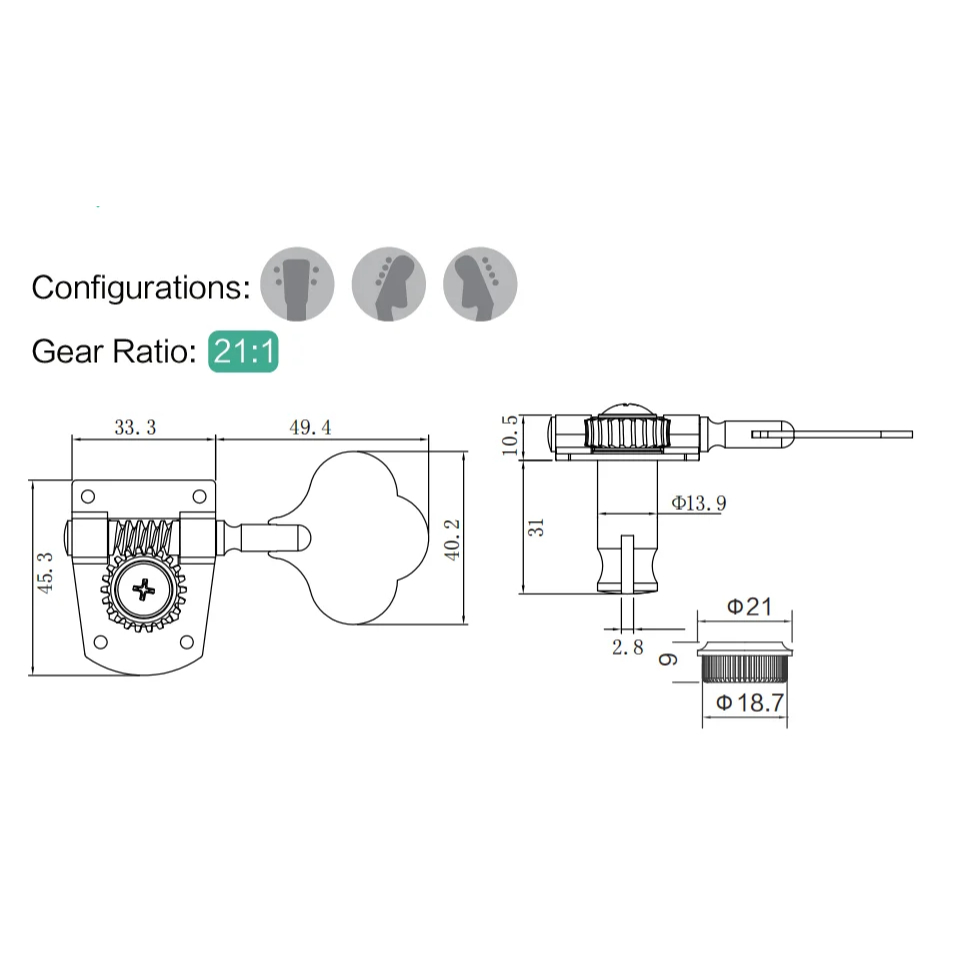 GUYKER Open Frame Electric Bass Tuning Peg Gear ratio Tuning Pegs 21:1 Chrome Black Gold For Bass