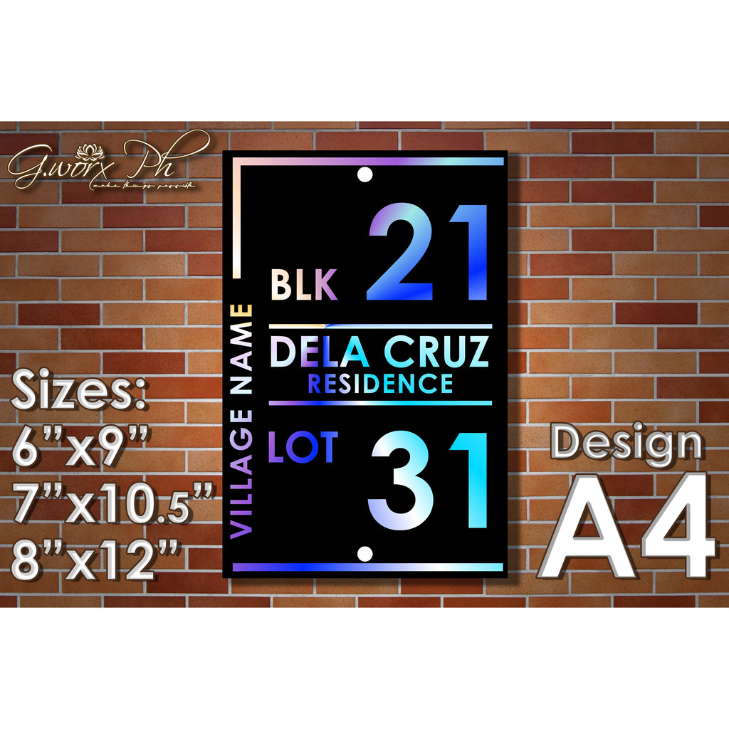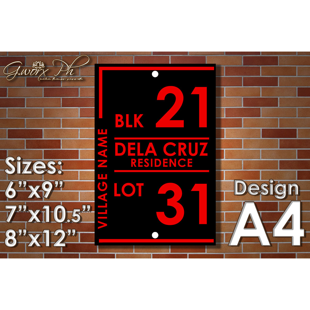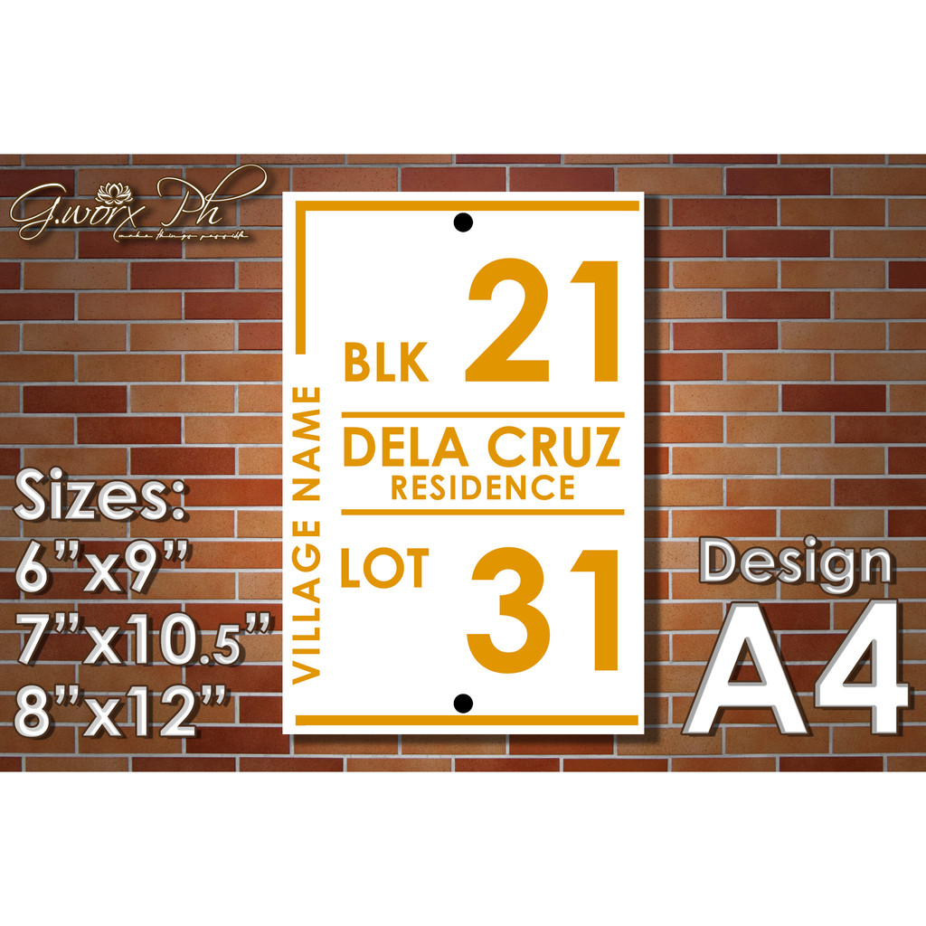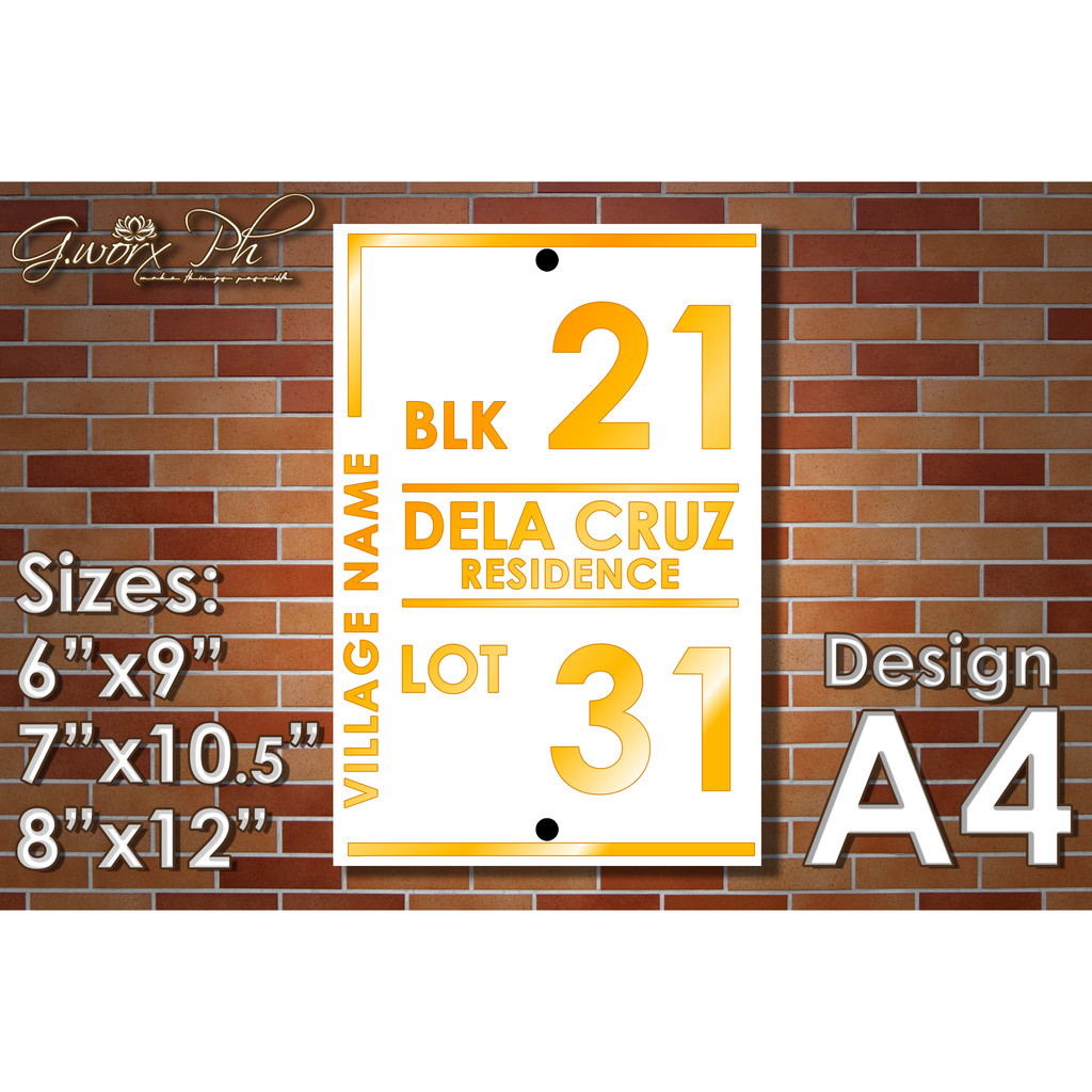 GWorx [Double Layer Acrylic Plate] [A4] Custom Made Home Address Plate Acrylic Plate - complete Set