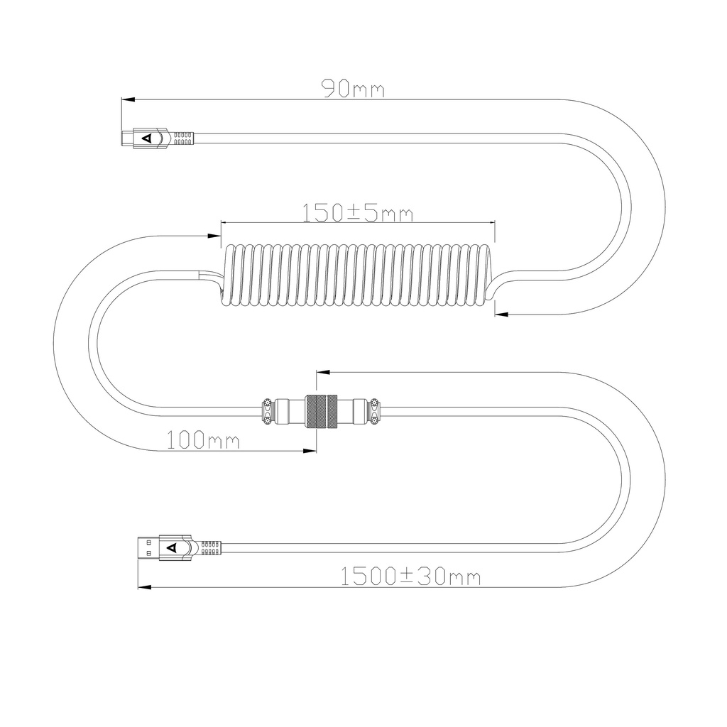 GX16 To USB-C Cable Usb Type-C Cables For Mechanical Keyboard Double sleeve coiled keyboard cable