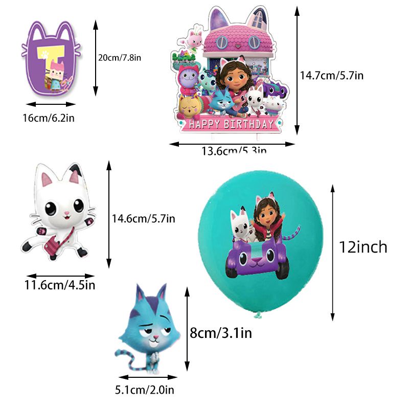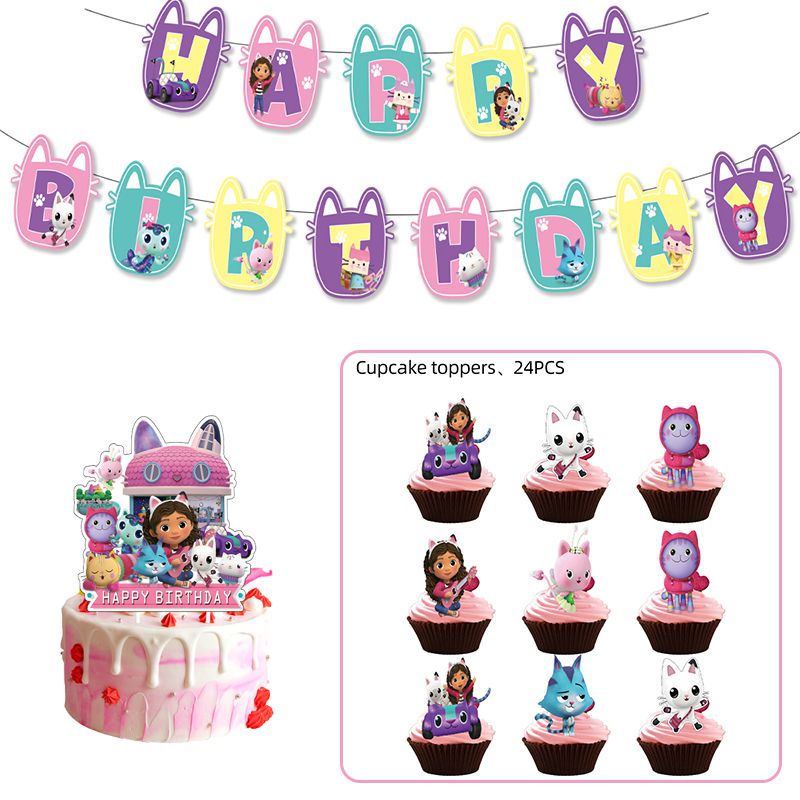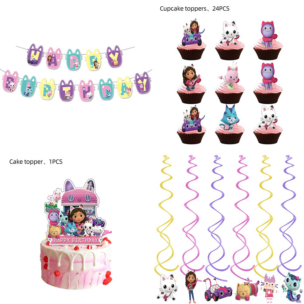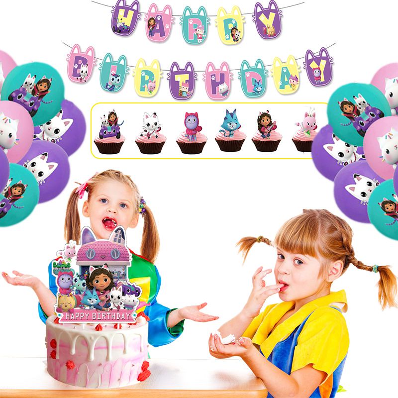 Gabby's Dollhouse Theme Happy Birthday Party Decoration Cake Topper Balloons Banner Party Needs Decor Party Supplies