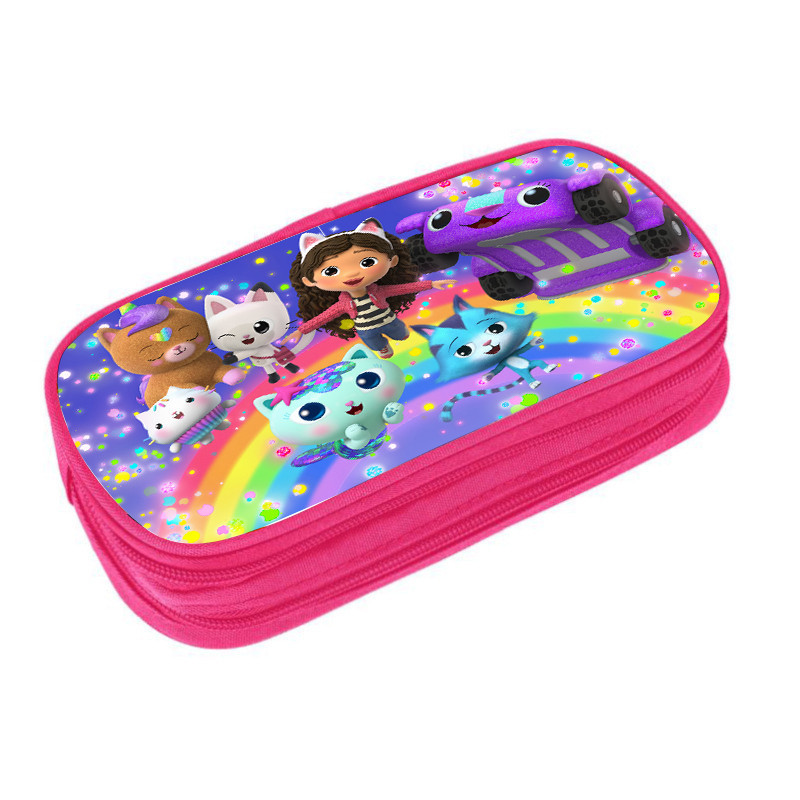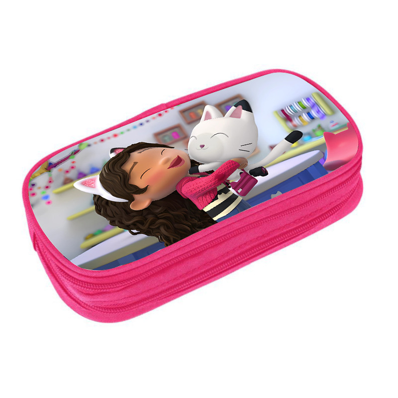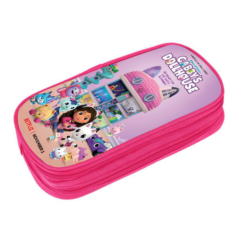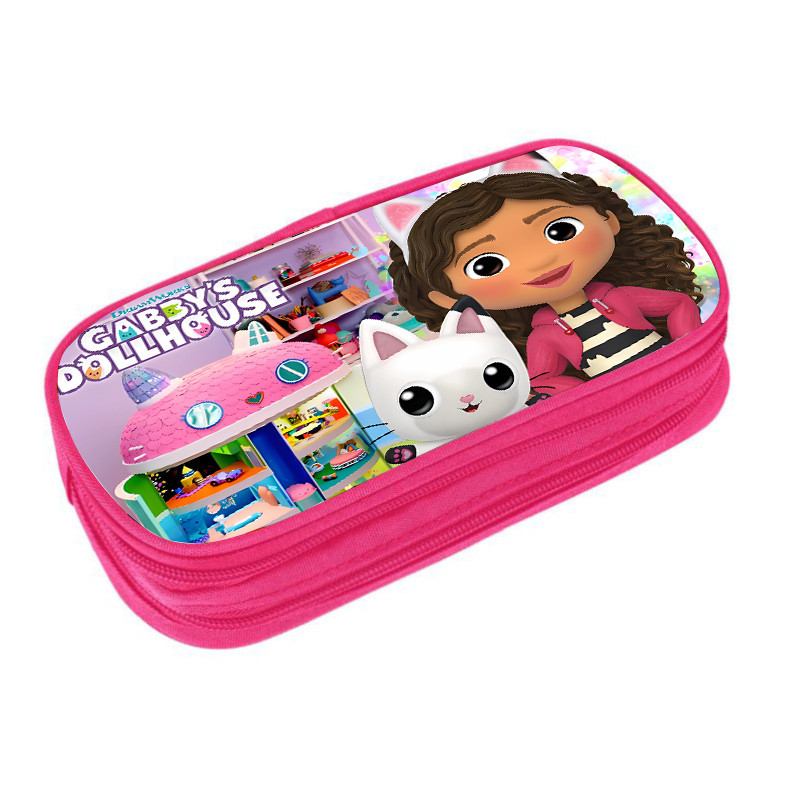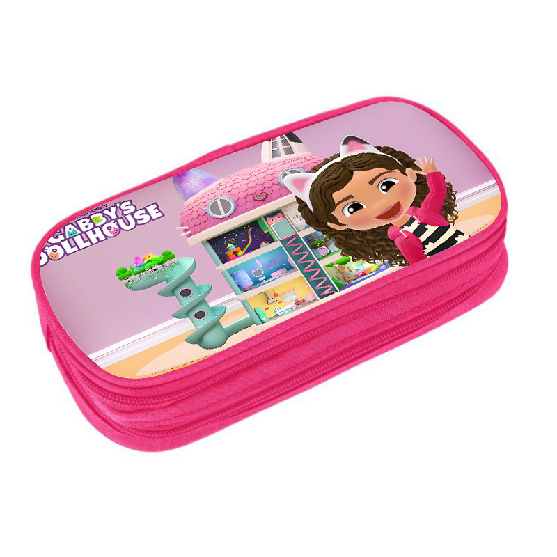 Gabby Doll House Pink clamshell pencil case Double multifunctional stationery bag Cartoon cartoon student supplies for kids and students