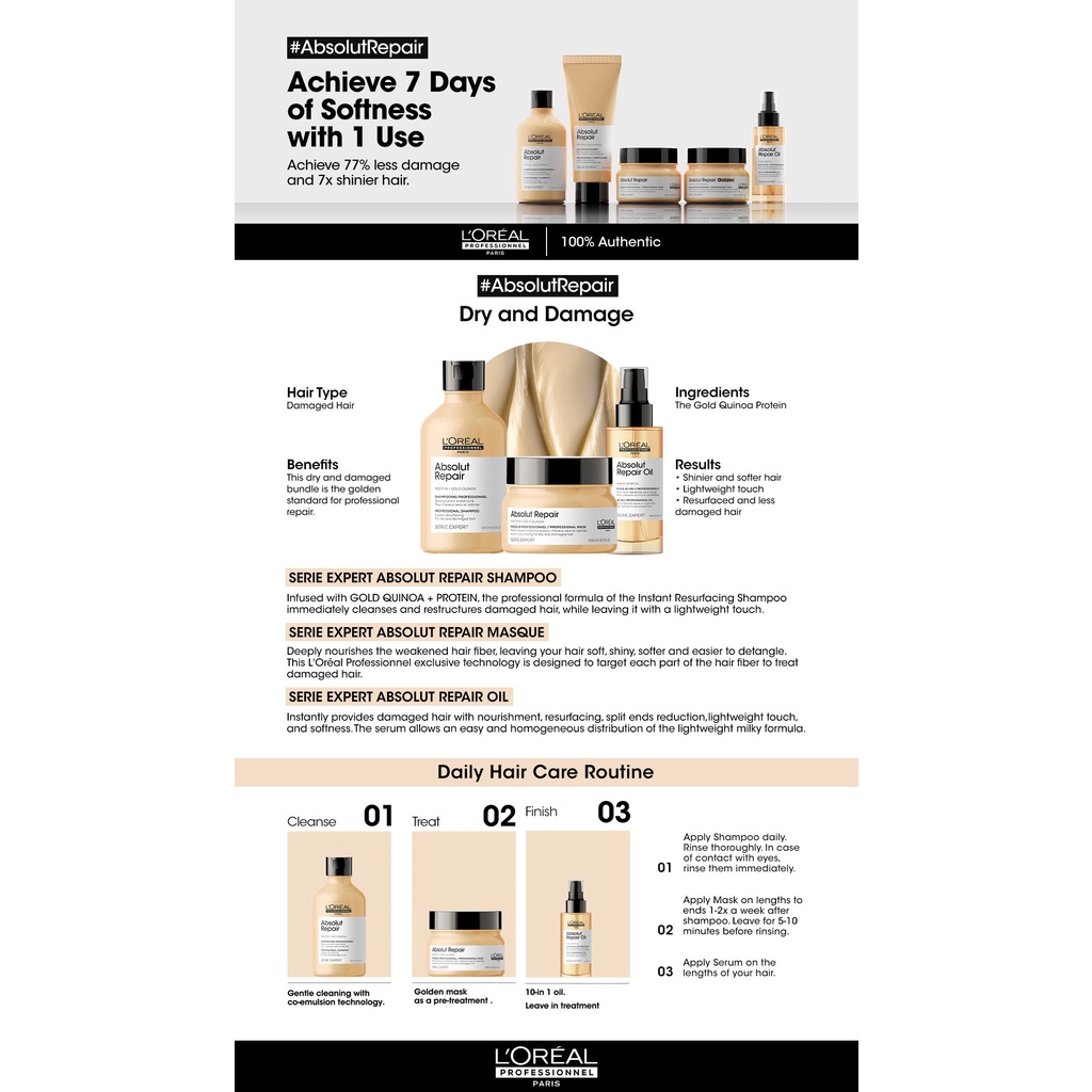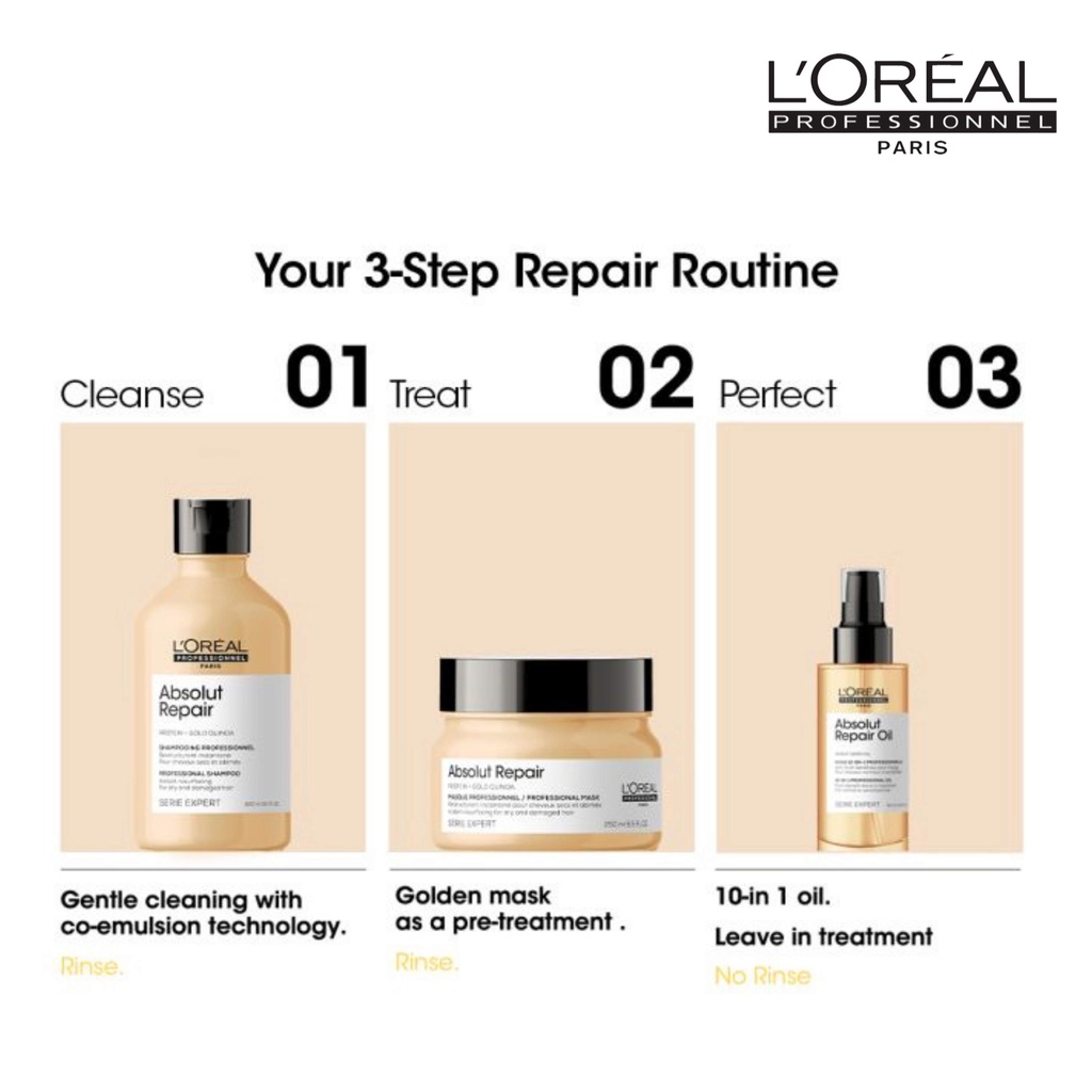 LOreal Professionnel Absolut Repair Gold Shampoo Hair Mask and Oil Trio