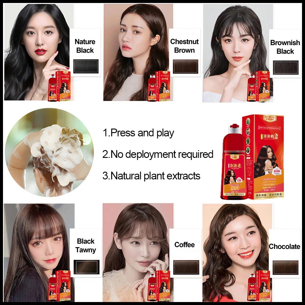 5Colors Dyeing Foam Shampoo Hair Color Shampoo Bubble Hair Dyeing Cream Hair Dye Shampoo 500ml ◭ ✈