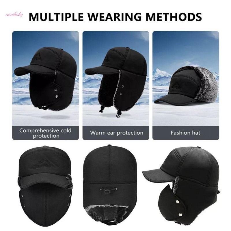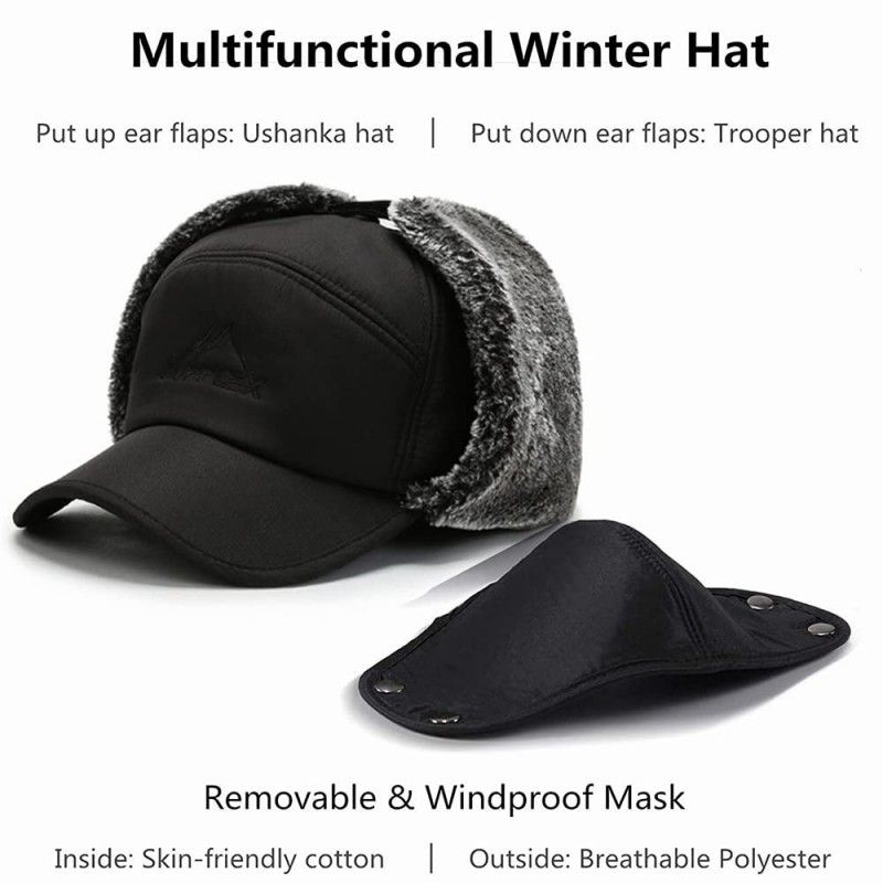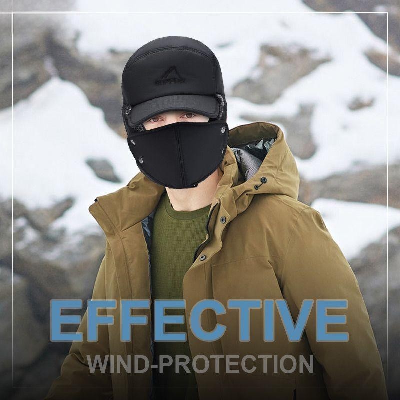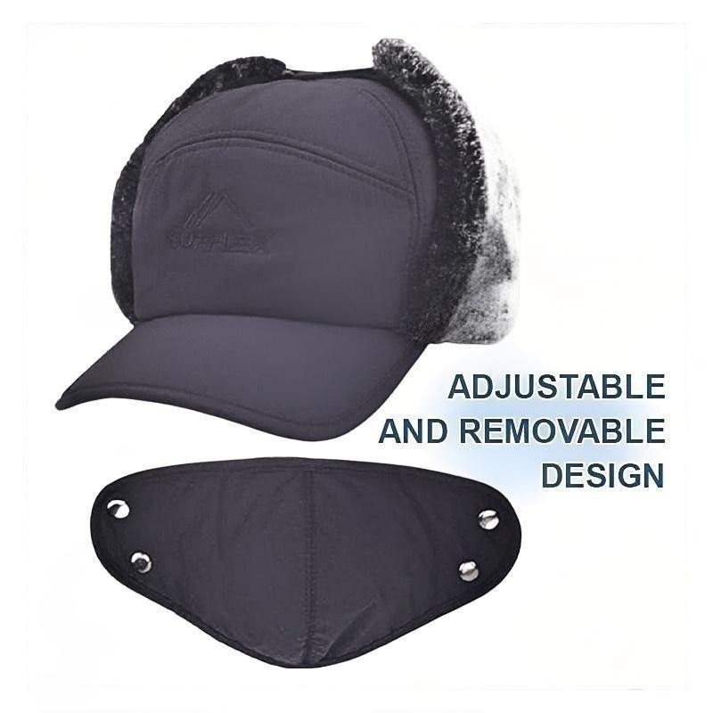 Winter Outdoor Sports Hat for Men Windproof Fur Lined Detachable Ear Flaps