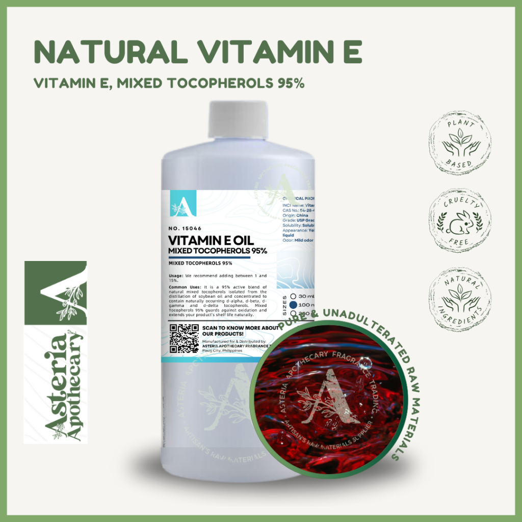 Vitamin E Oil, Mixed Tocopherols 95% | Natural Vitamin E (15mL, 30mL, 100mL) - Asteria Apothecary
