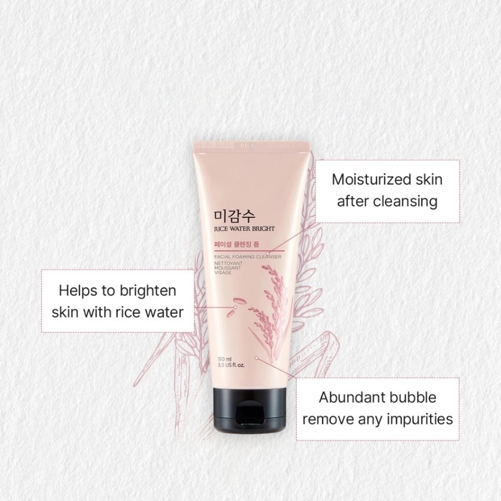 150ML The Face Shop Rice Water Bright Facial Cleanser | Brightening Foaming Cleanser & Makeup Remove