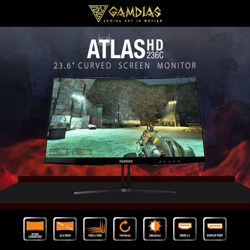 Gamdias Atlas HD 236C (24") Curved Gaming Monitor 144hz Full HD