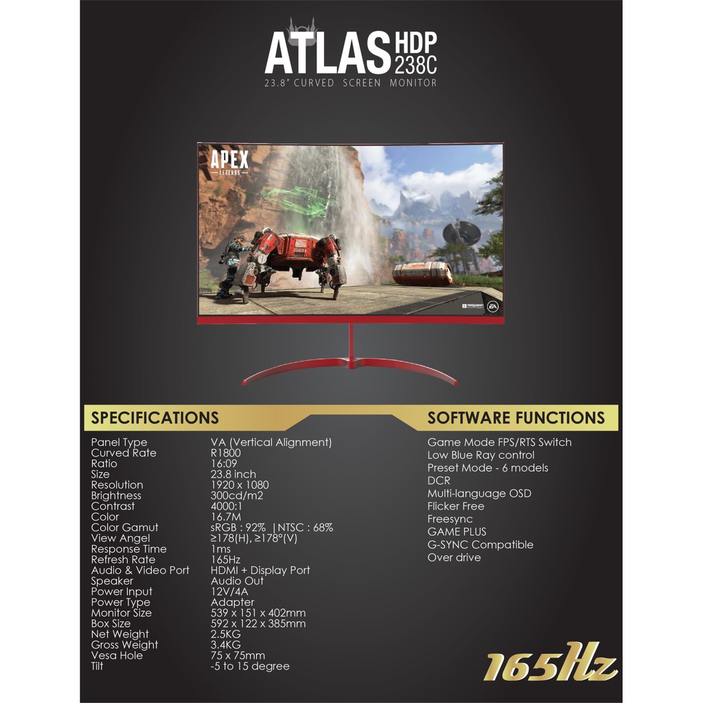 Gamdias Atlas VH238F HD236C HDP238C Curved Full HD VA Monitor 75Hz 144Hz 165Hz