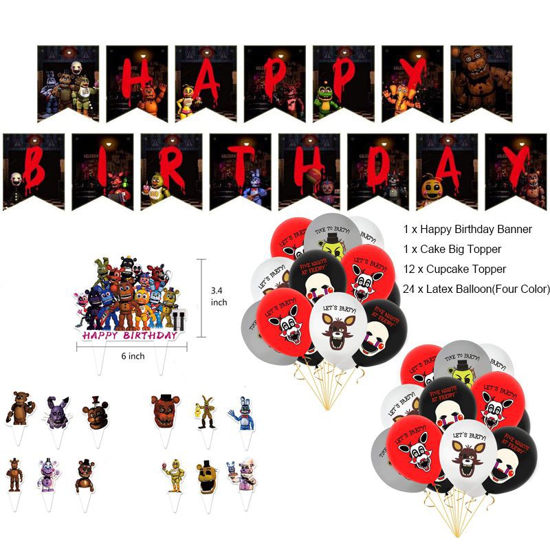Game Five Nights At Freddy's FNAF Birthday Party Decor Supplies Set Banner Balloon Cake Topper Decoration