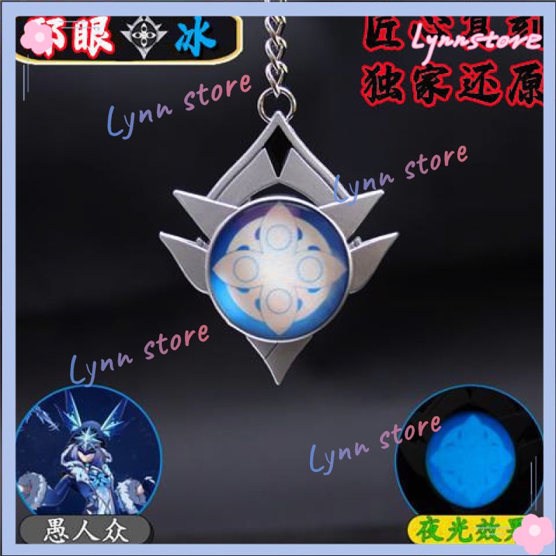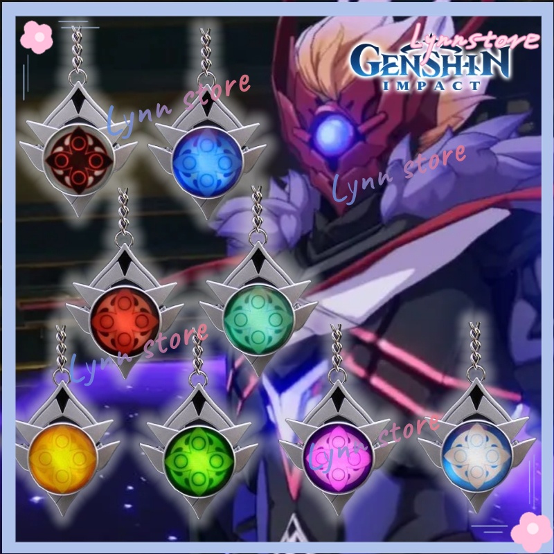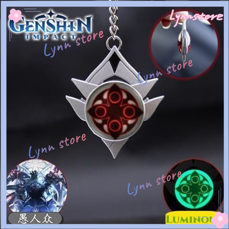Game GENSHIN IMPACT New Cosplay Keyring Snezhnaya Vision Fatui Delusion Double-sided Glass Luminous Keychain Gifts for Kid Toy