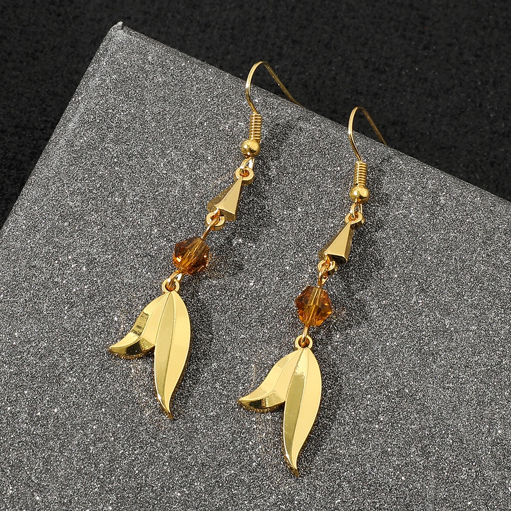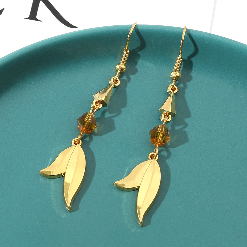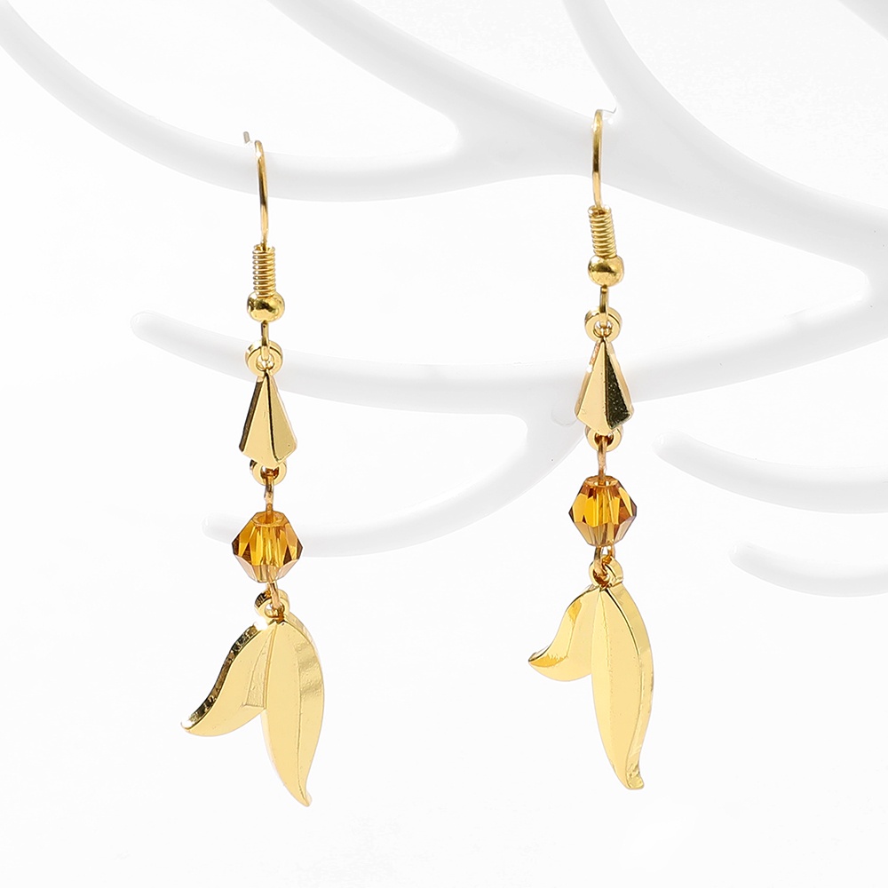 Game Genshin Impact Traveler Aether Feather Shape Earrings Ear Clips Crystal Eardrop For Women Men Jewelry