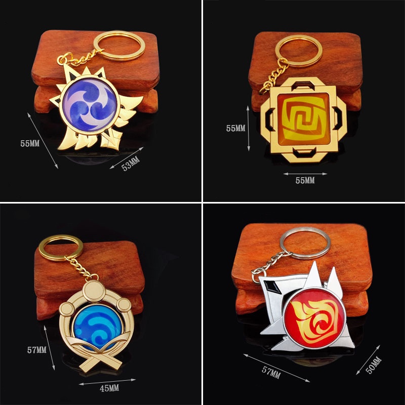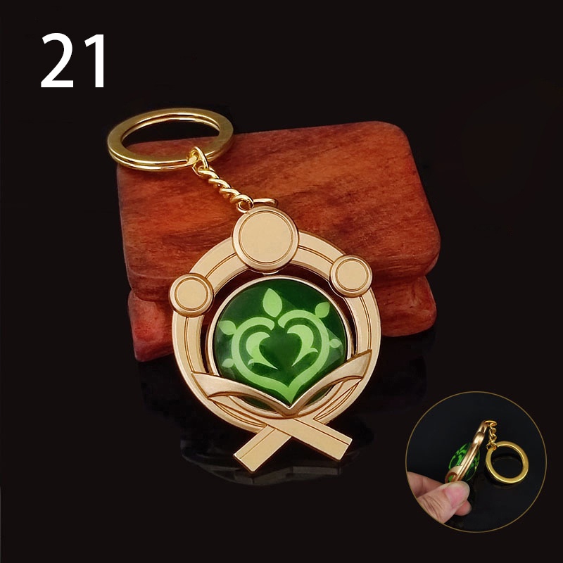 Game Genshin Impact Vision Lnazuma Ganyu Keqing Wendi Xiao Keychain Luminous 7 Element Weapons Eye Of Original God Toy Keyring