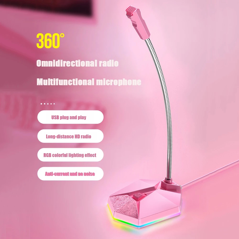 Gamer Gaming Online Class Course Learning HD Microphone Game Mike USB RGB Light Noise Reduction Capacitive Capacitance Live Streaming Broadcast Anchor Video Conference USB Mic Apply to PC Computer Laptop