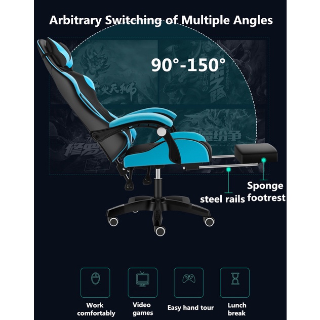 Gaming Chair With 360% Rotation And Adjustable Height With Foot Rest