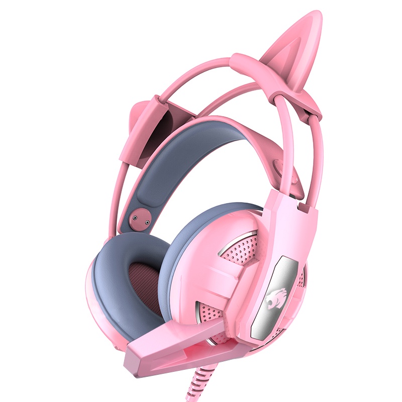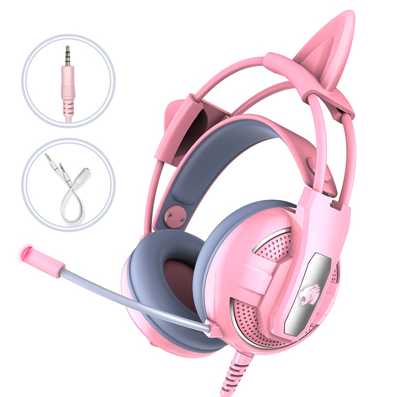 Gaming Headset with Mic Cute sakura Pink Headphone with Microphone Cat ear Wired for Girls Kids hedset for phone PC desktop Laptop Computer PS4 kitty